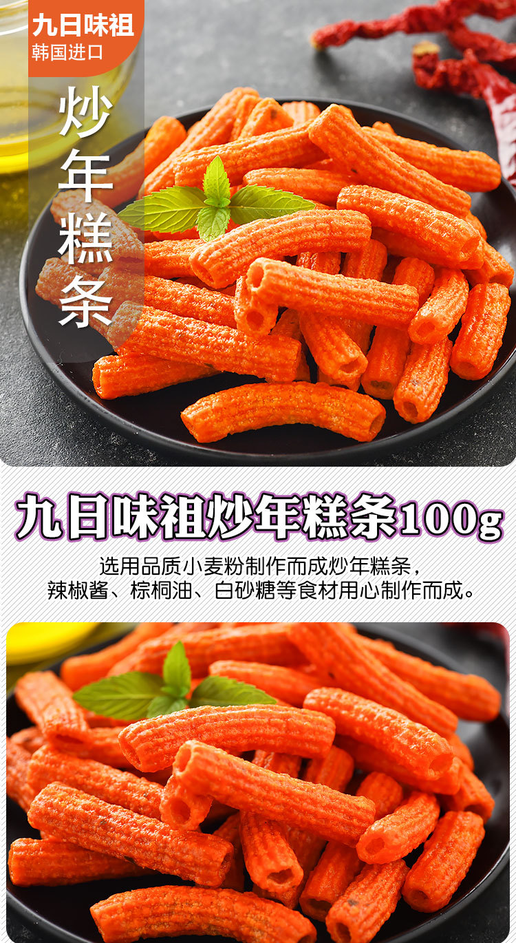 South Korea imported 9th sweet and spicy cake bar 100g hot selling casual snacks wholesale internet celebrity rice cake bar snacks