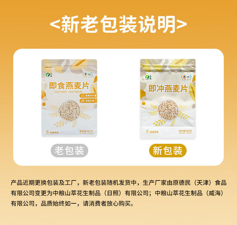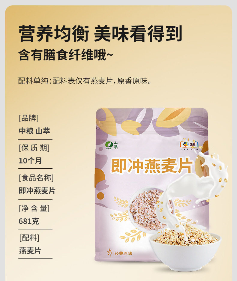 Cofco Oatmeal Pure Oatmeal Ready-To-Eat Oatmeal Nutritious Cereal 681g Full Meal Replacement Lazy Person Instant Breakfast Whole Grains
