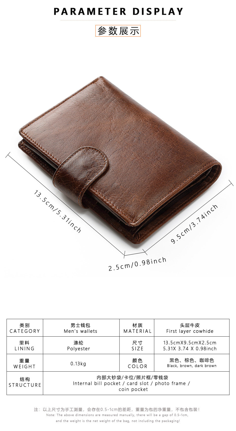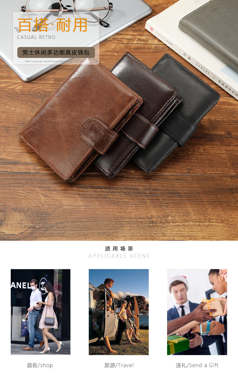 Aliexpress Cross-Border Wallet Short Style Vintage Genuine Leather Coin Purse Top Layer Cowhide Vertical Leather Wallet European and American Retro