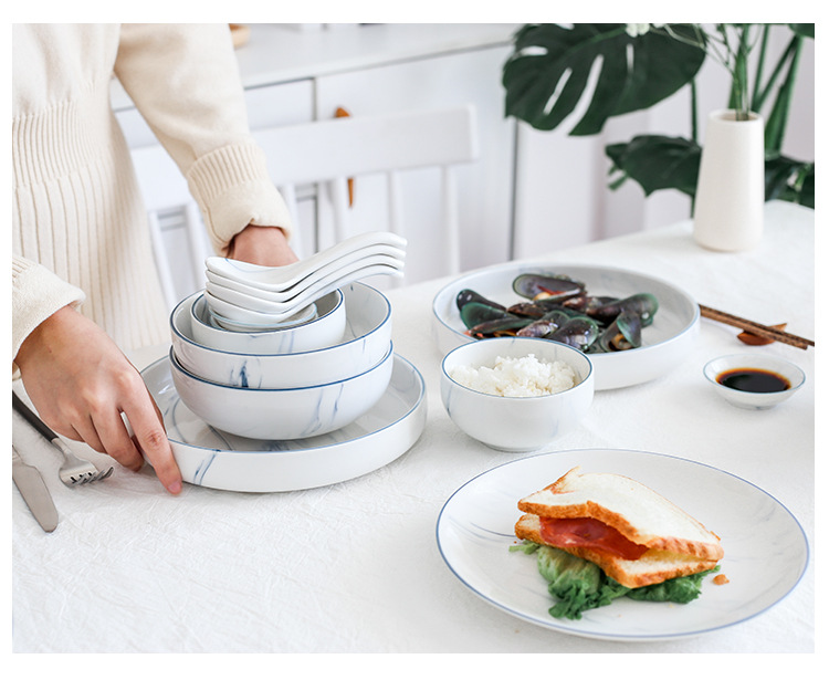 Dehua Ceramic Tableware Wholesale Marble-Patterned Tableware Ins Nordic Style Plates Simple Style Household Salad Bowls