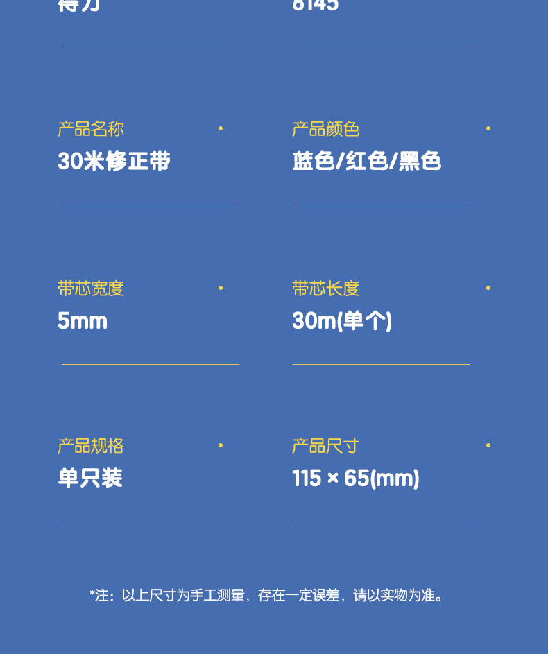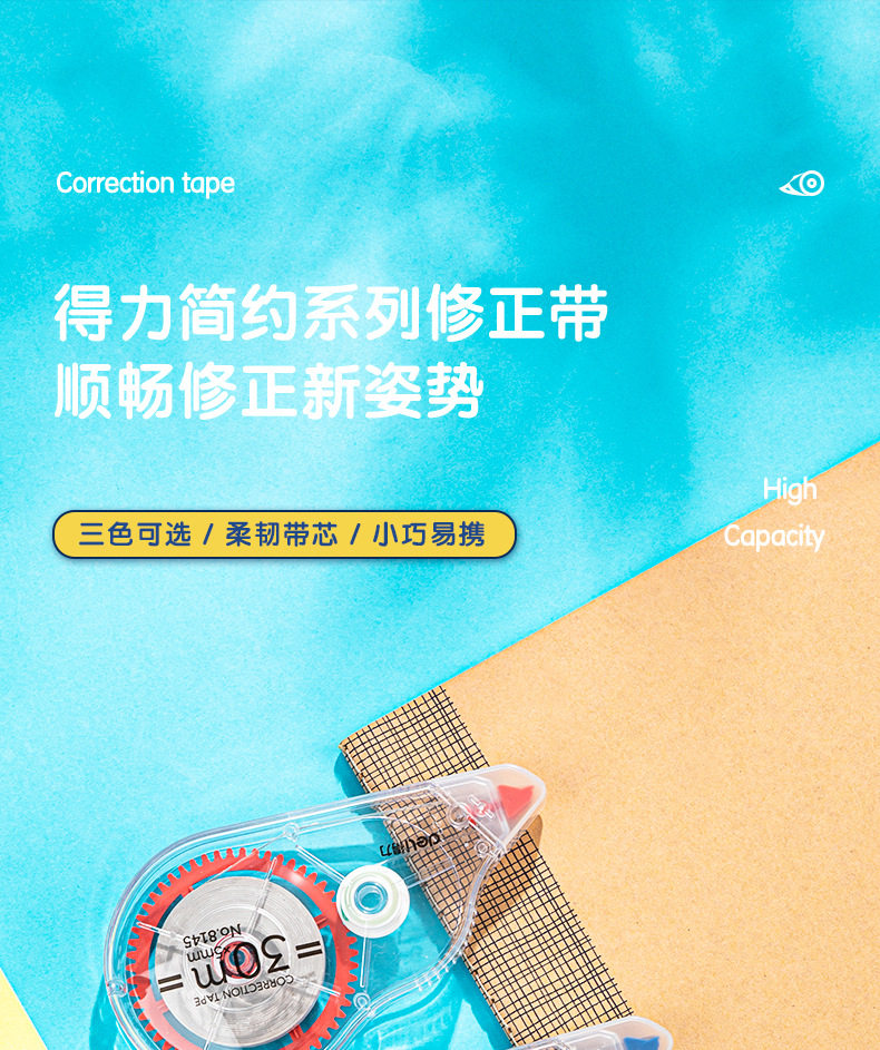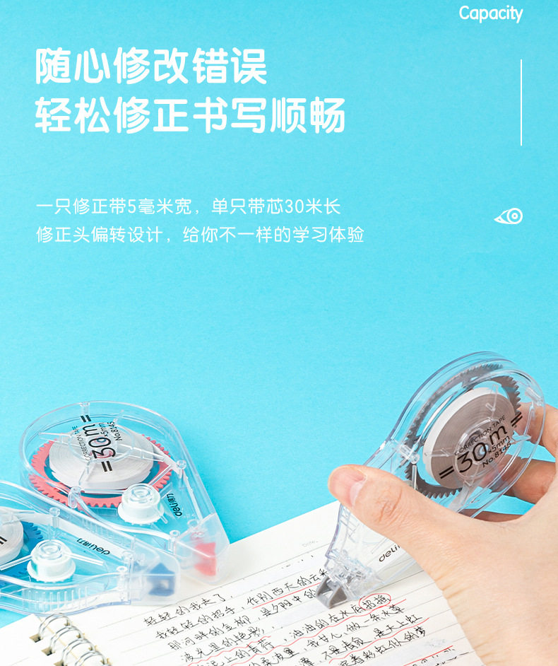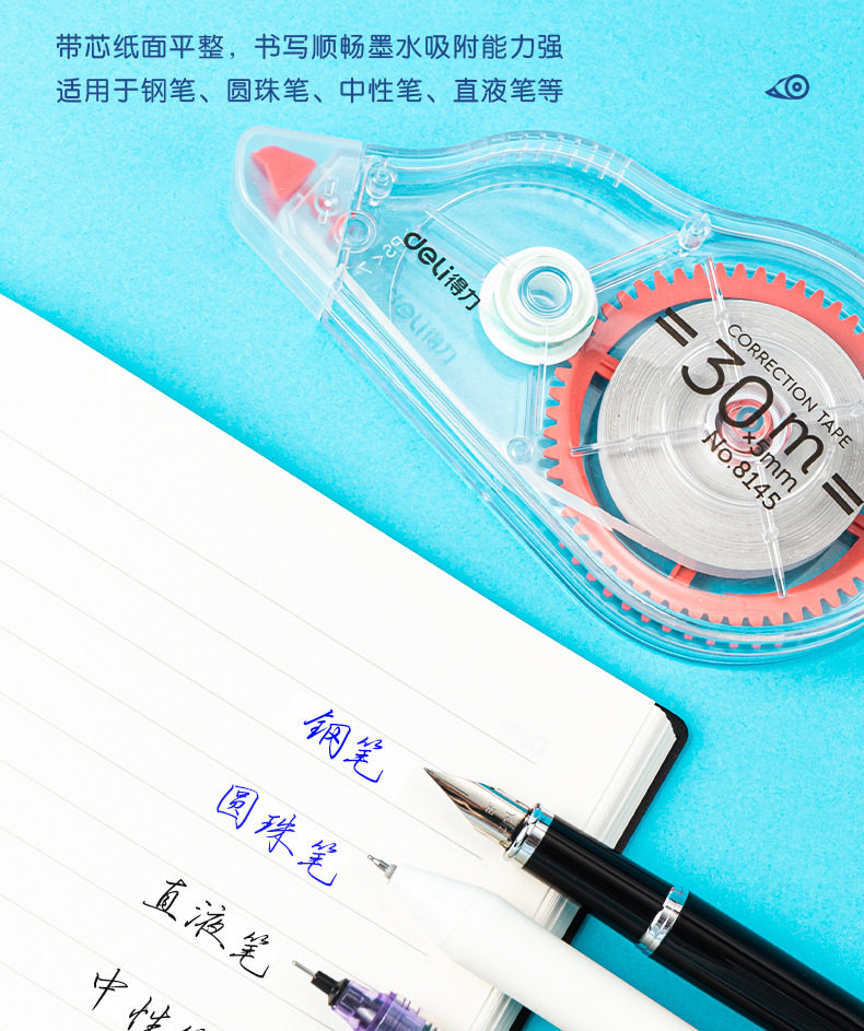Deli 8145 correction tape large capacity 30m student correction tape correction tape primary school stationery wholesale