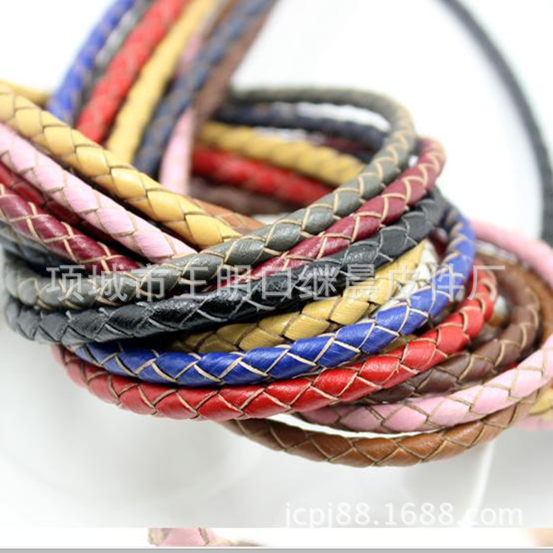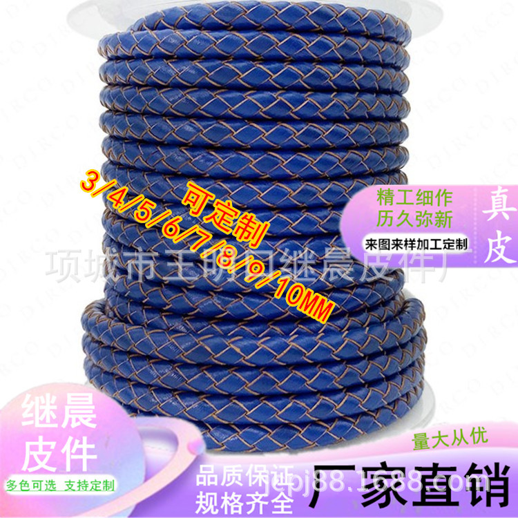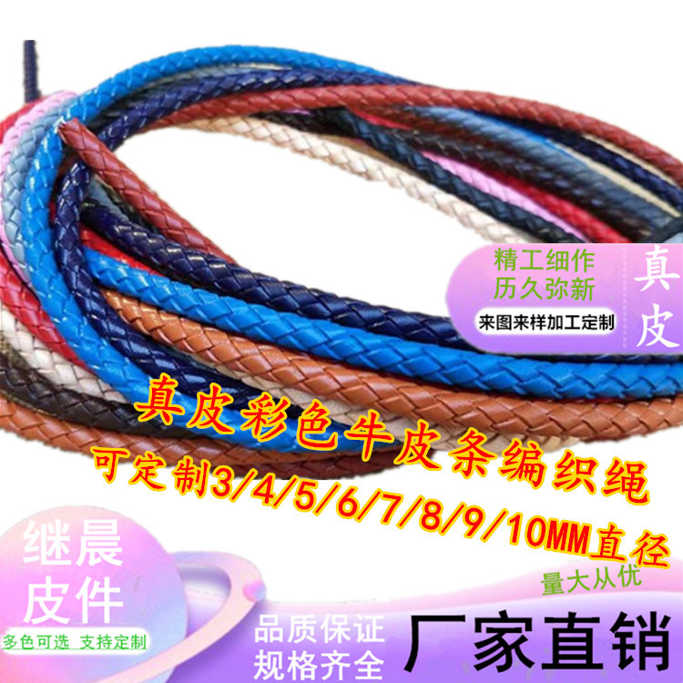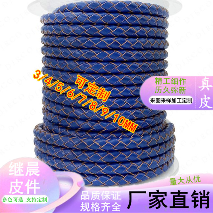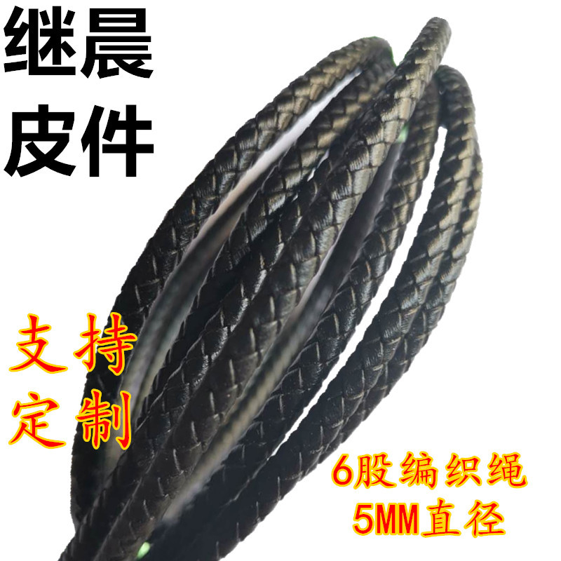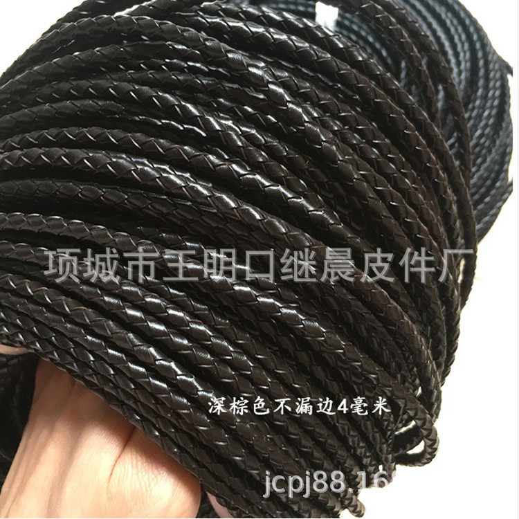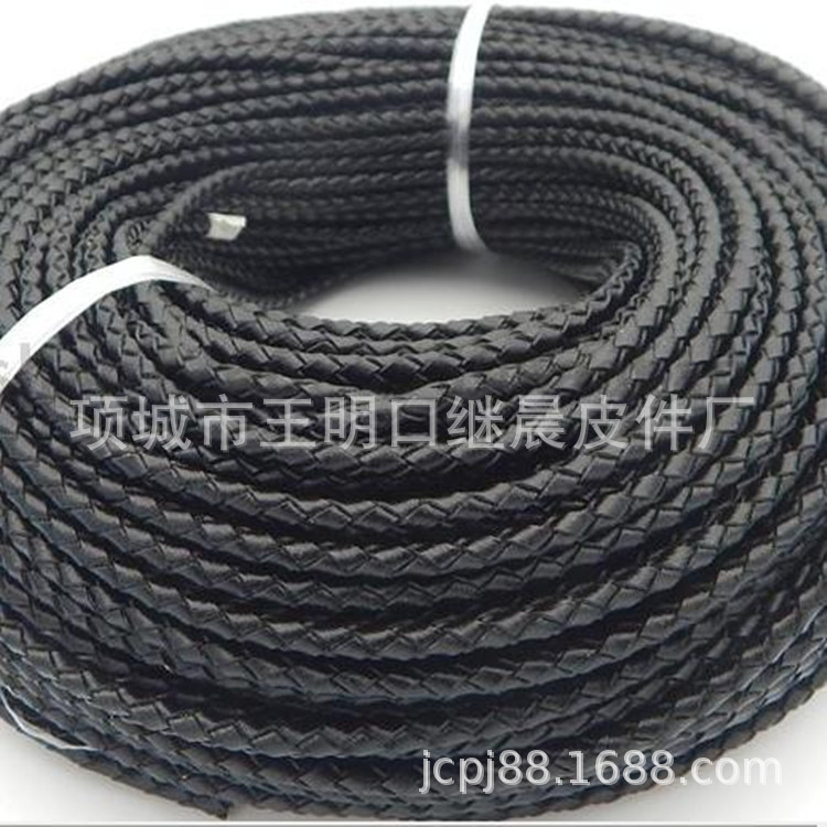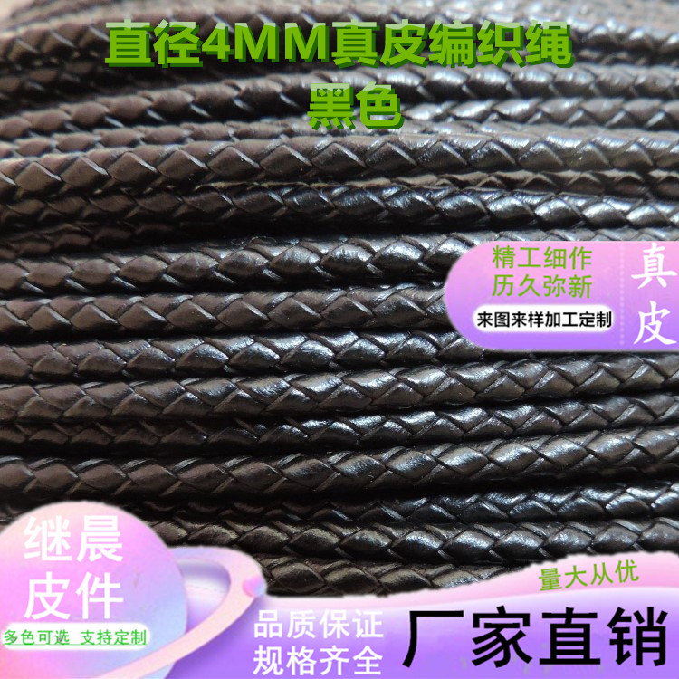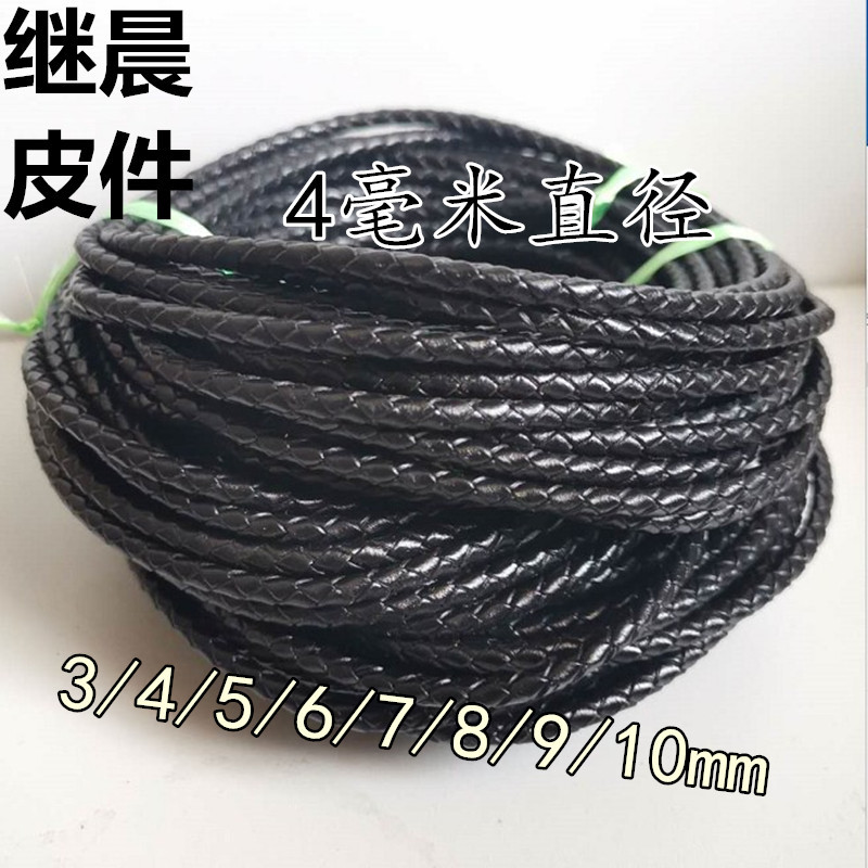Braided Cowhide Rope Round Black 3/4/5/6/7/8/9/10mm Beaded Bracelet