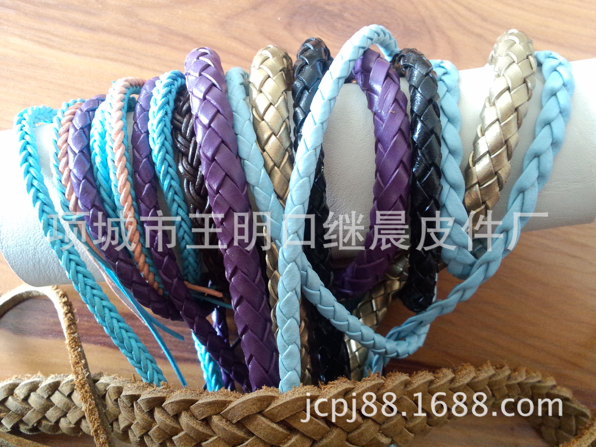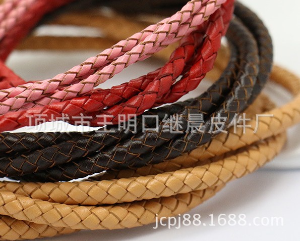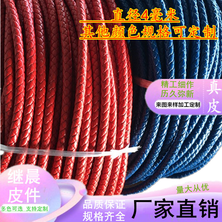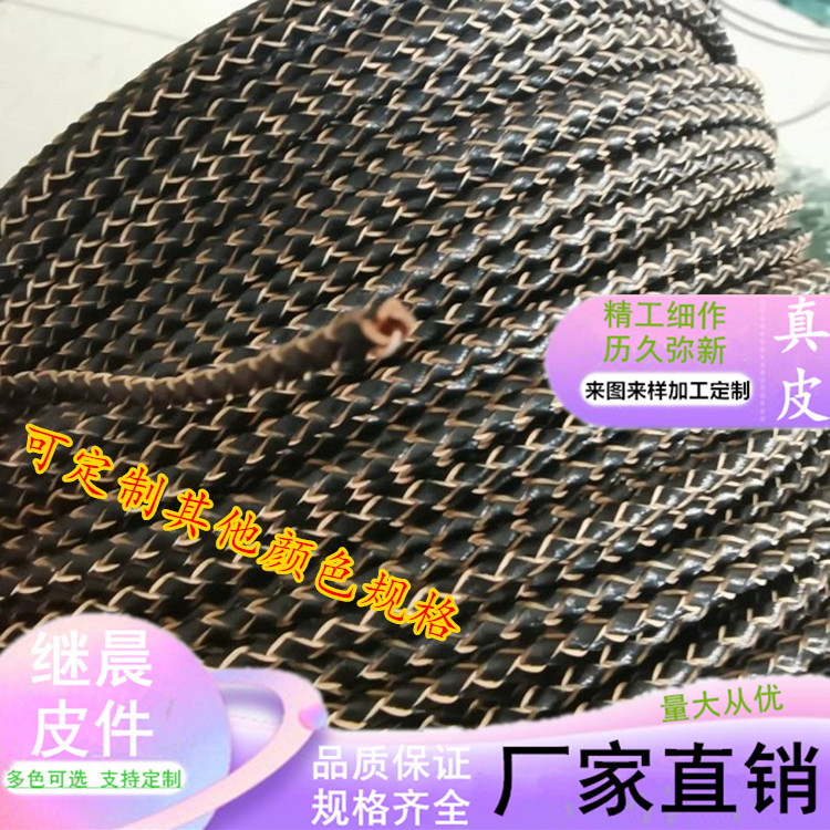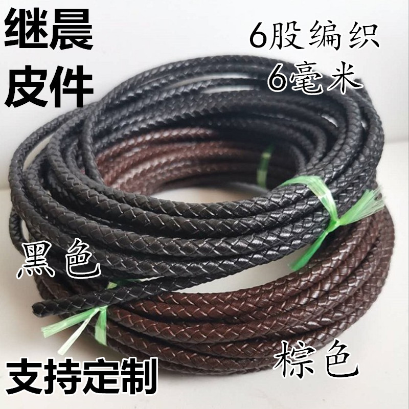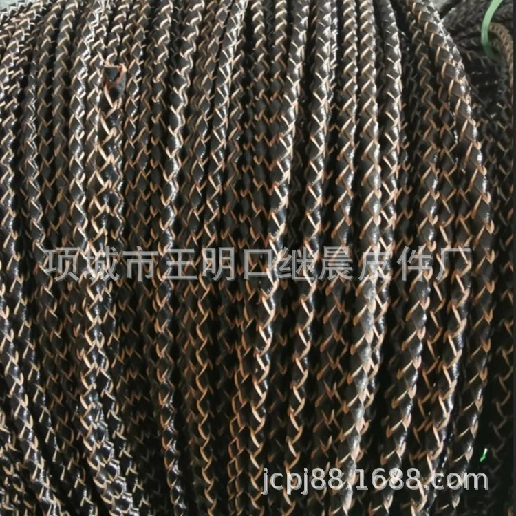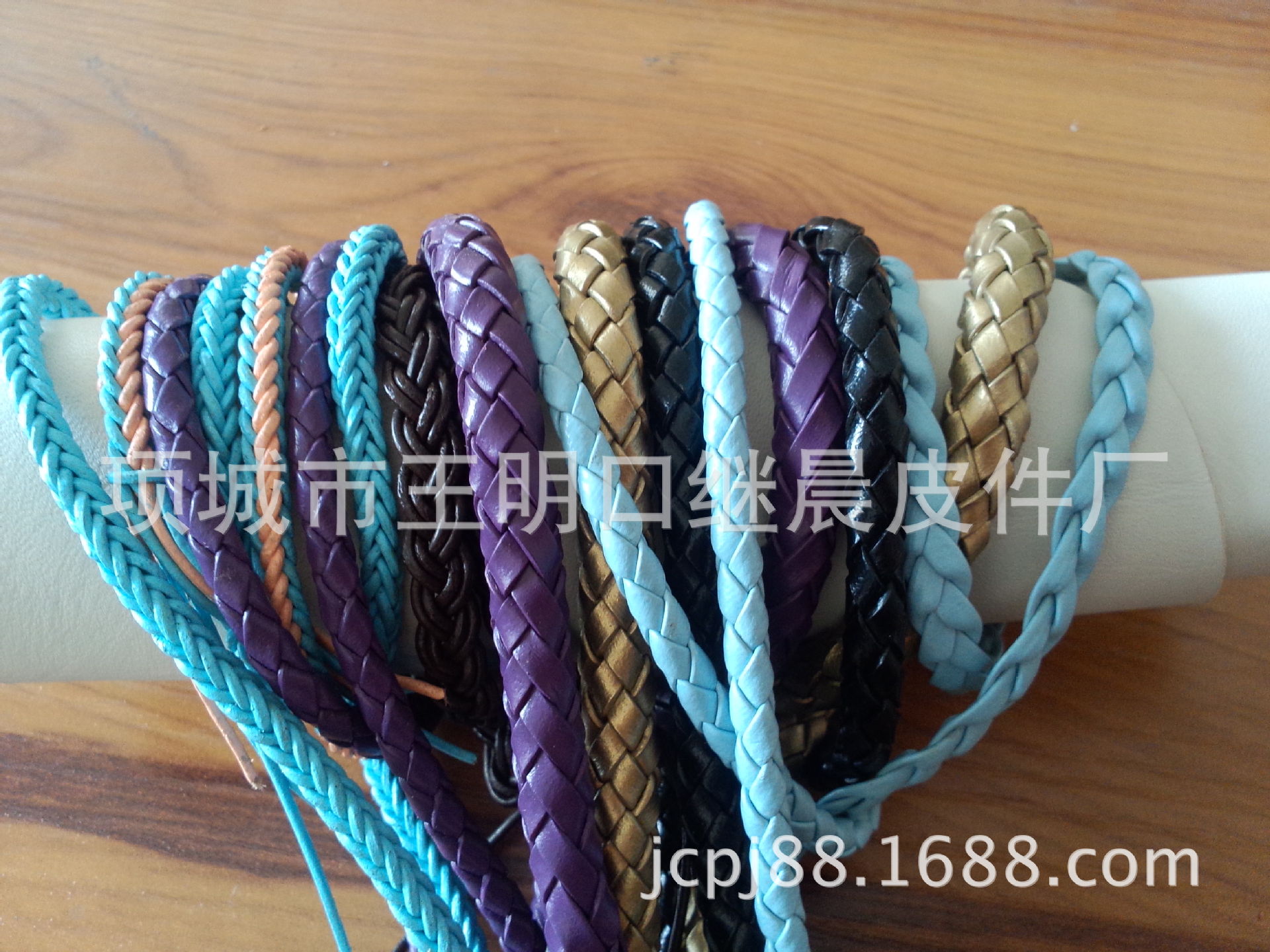 Braided Cowhide Rope Round Black 3/4/5/6/7/8/9/10mm Beaded Bracelet