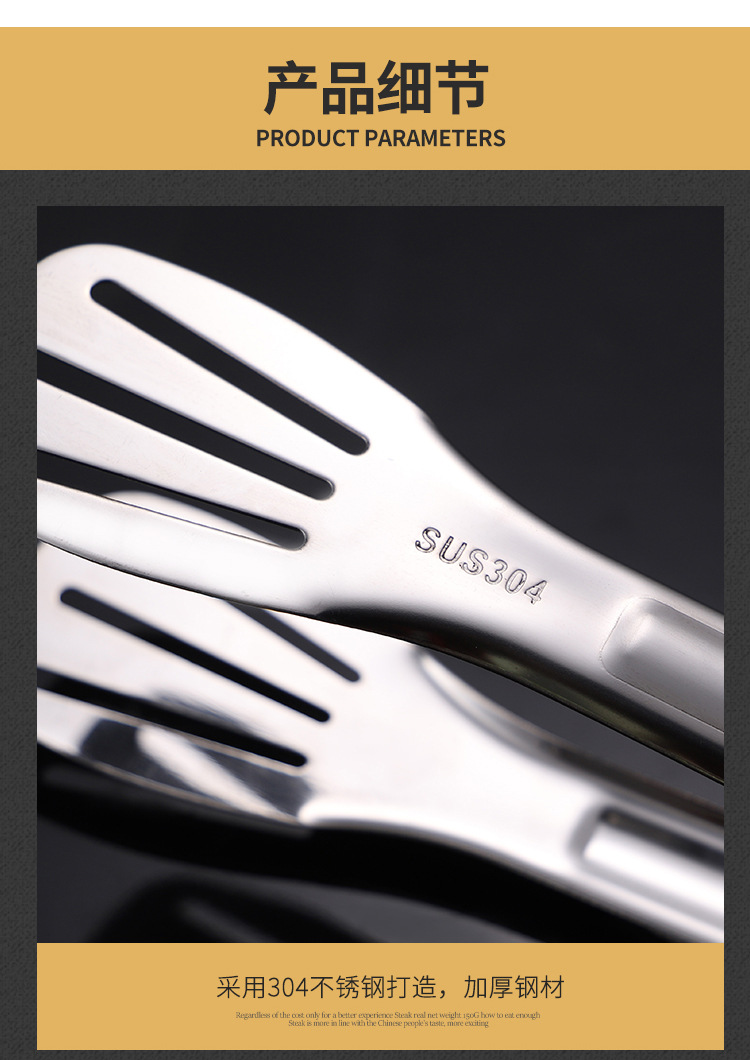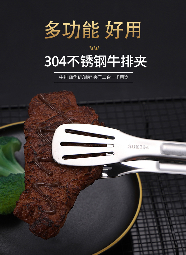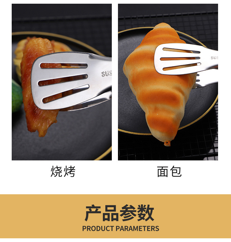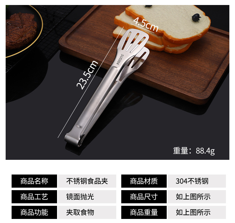 Thickened three-line 9-inch food clip 304 stainless steel barbecue bread clip steak clip cake clip wholesale hotel supplies