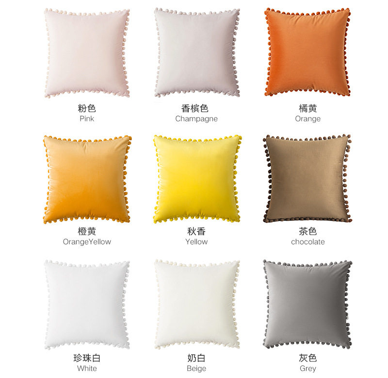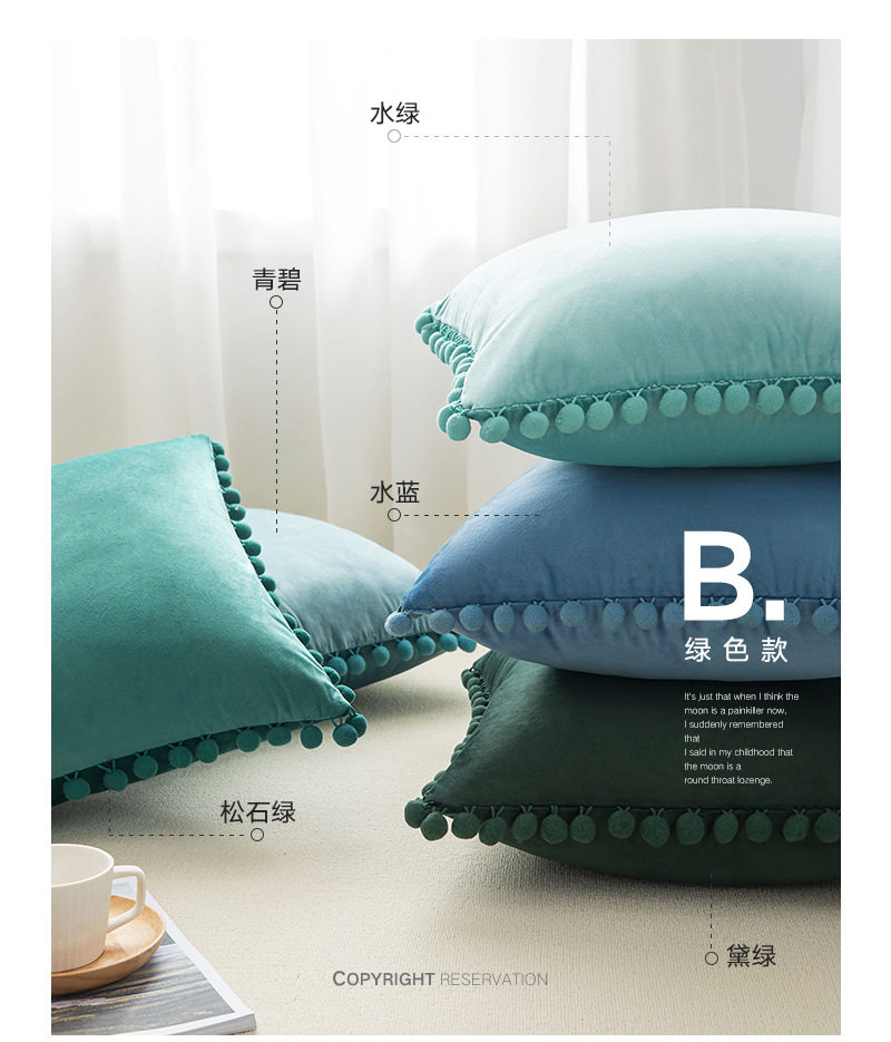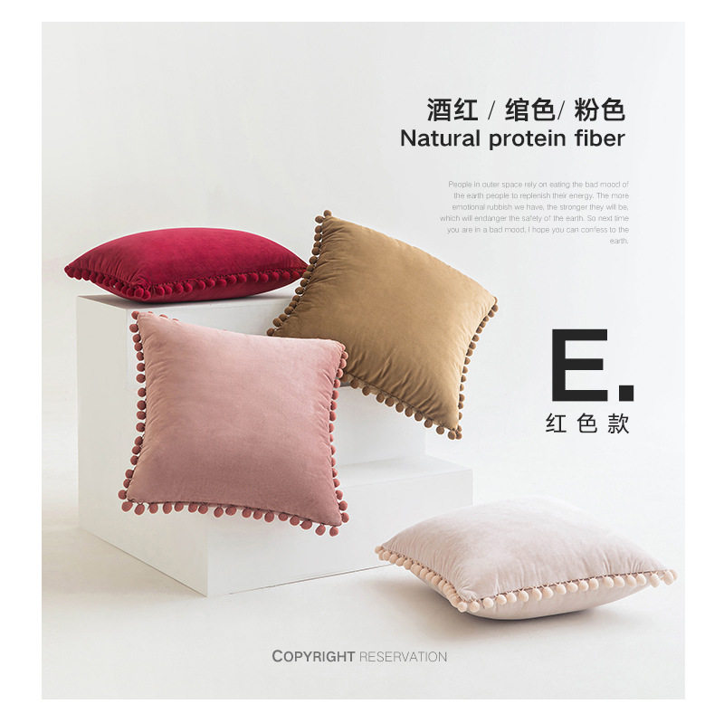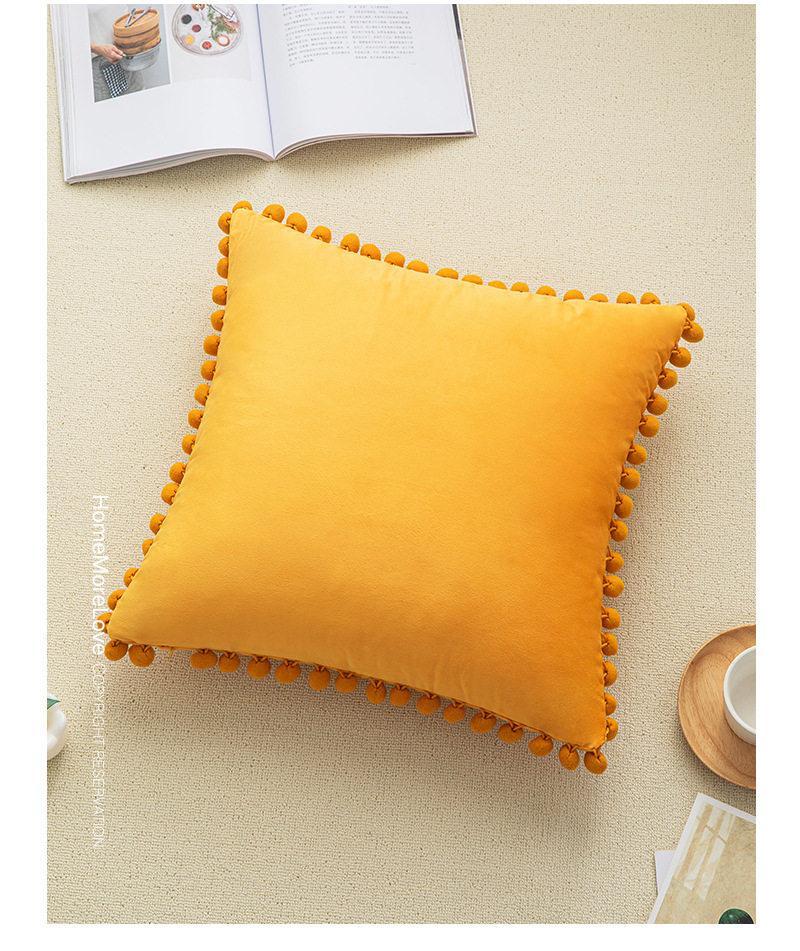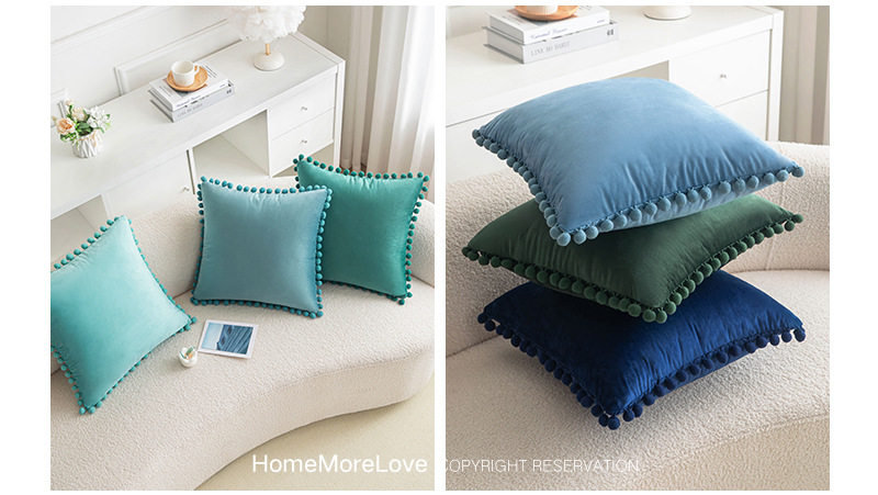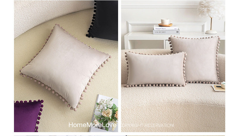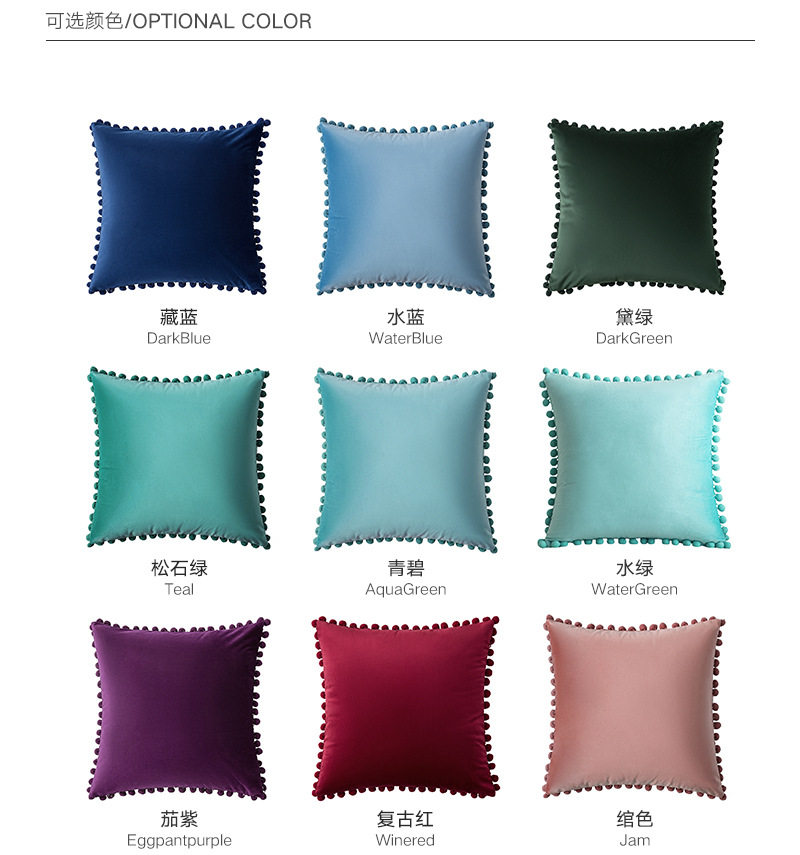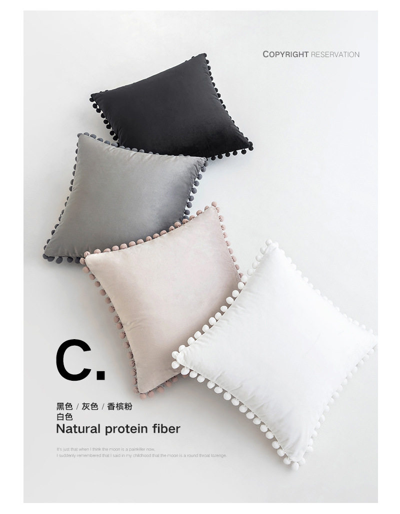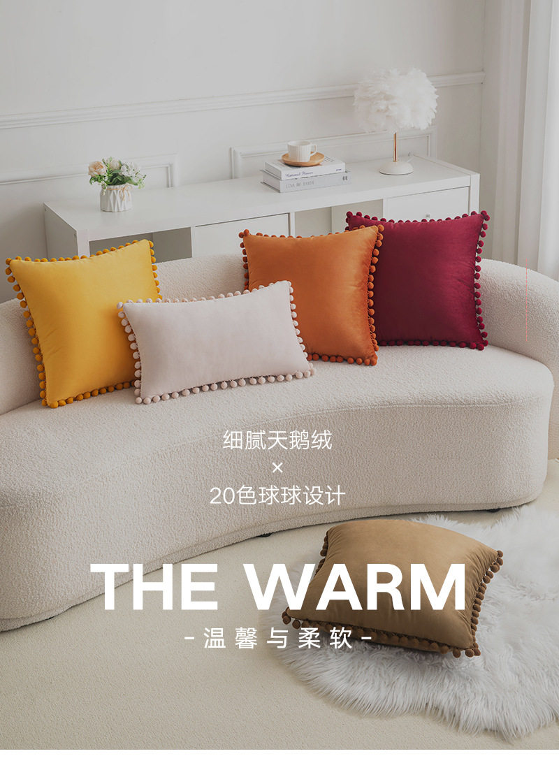 ins style home fabric model room sofa pillow case wholesale wool ball velvet sofa cushion rectangular