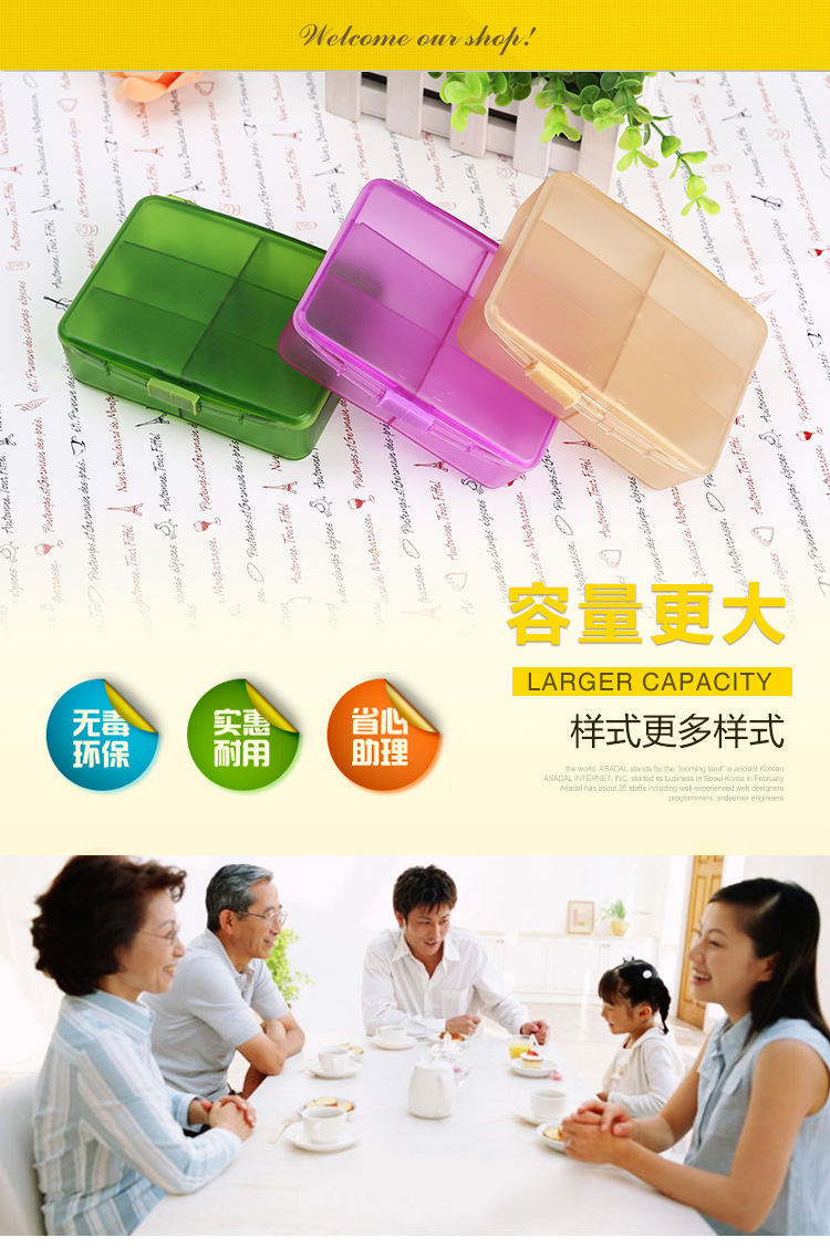 6-Compartment Portable Sealed Medicine Box, Detachable, Large-Capacity Travel Medicine Dispensing Box, Travel Size, Healthy