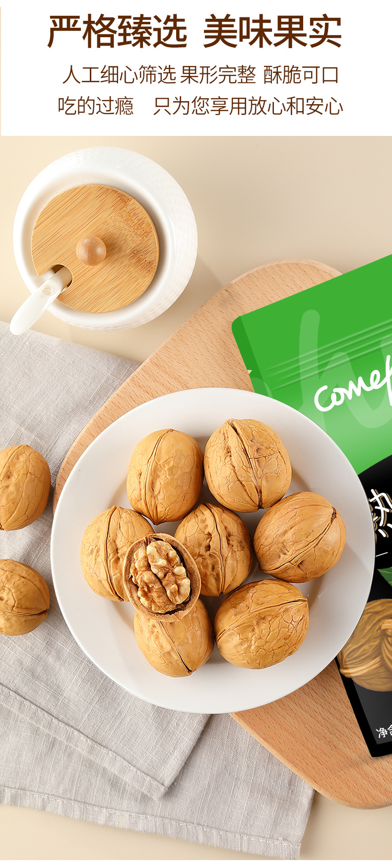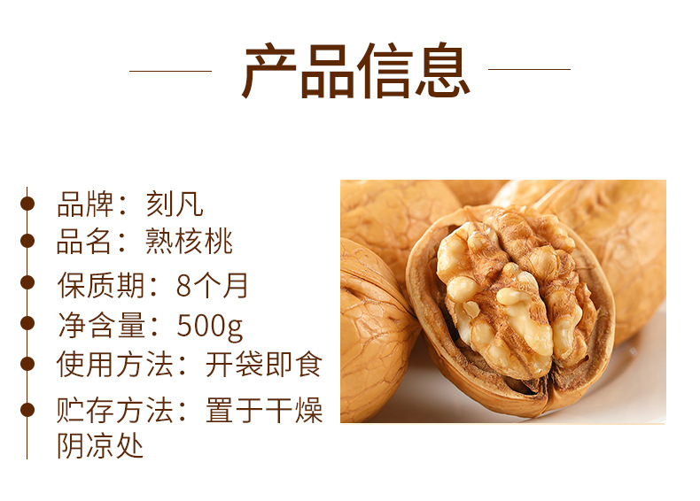 | Packing specification | Carved cooked walnut 500g |