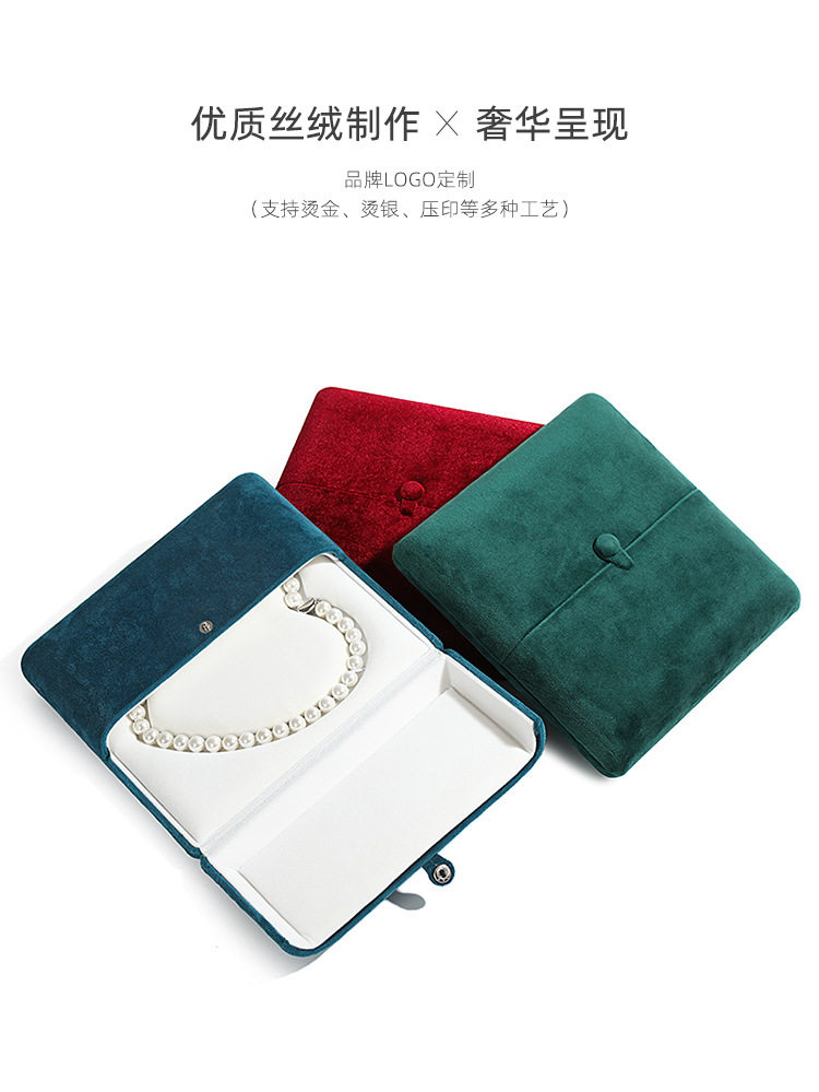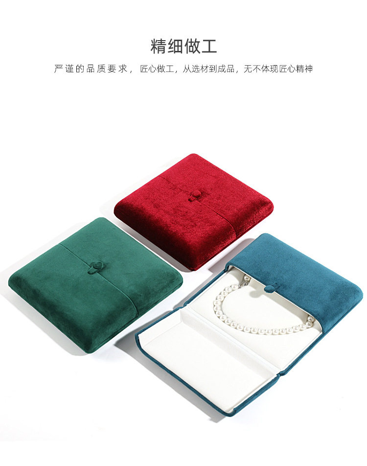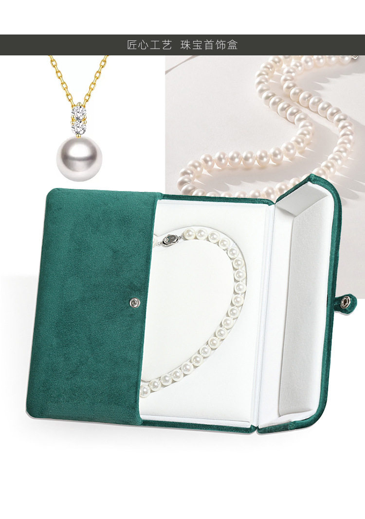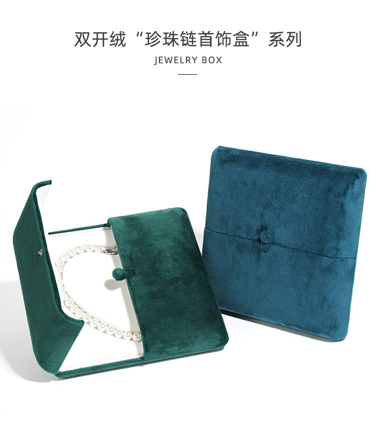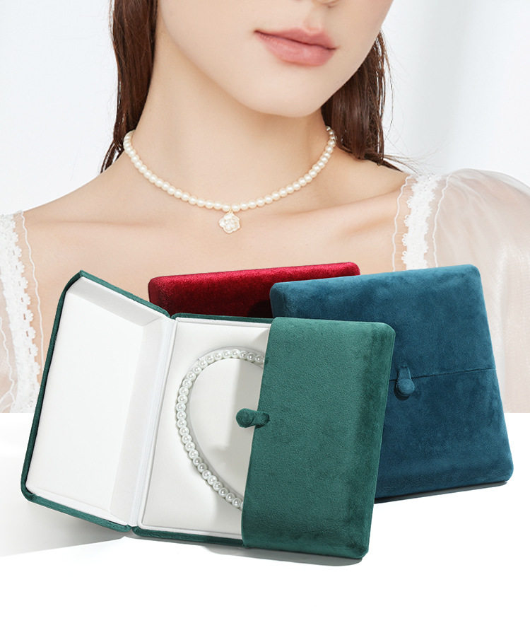Flannel jewelry chain box heart-shaped pearl necklace box necklace display double snap button packaging box jewelry box wholesale