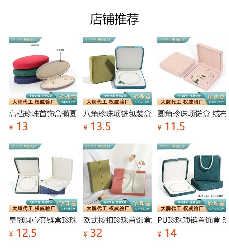 | Specification model | Purple heart-shaped pearl necklace box; no. 1,Rose red heart-shaped pearl necklace box; no. 1,Maroon heart-shaped pearl necklace box; no. 1,Burgundy heart-shaped pearl chain box (mesh pattern pu leather); no. 1,Light blue heart-shaped pearl necklace box; no. 1,Light gray heart-shaped pearl necklace box; no. 1,Dark green heart-shaped pearl necklace box; no. 1,Light blue snap pearl chain box; no. 1,Light blue three-piece pearl chain box set; no. 1,Light blue chain box (ring core); no. 1,Red tote bag; no. 1 |