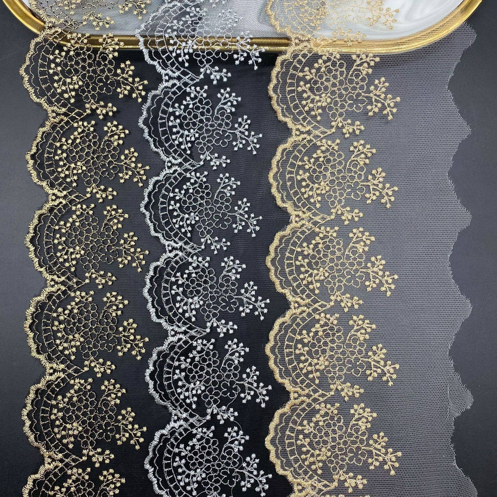 Gold lace home soft decoration wedding accessories Wave mesh embroidery lace clothing accessories gold lace lace