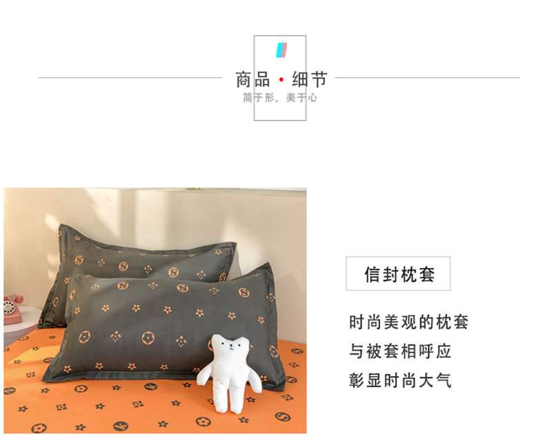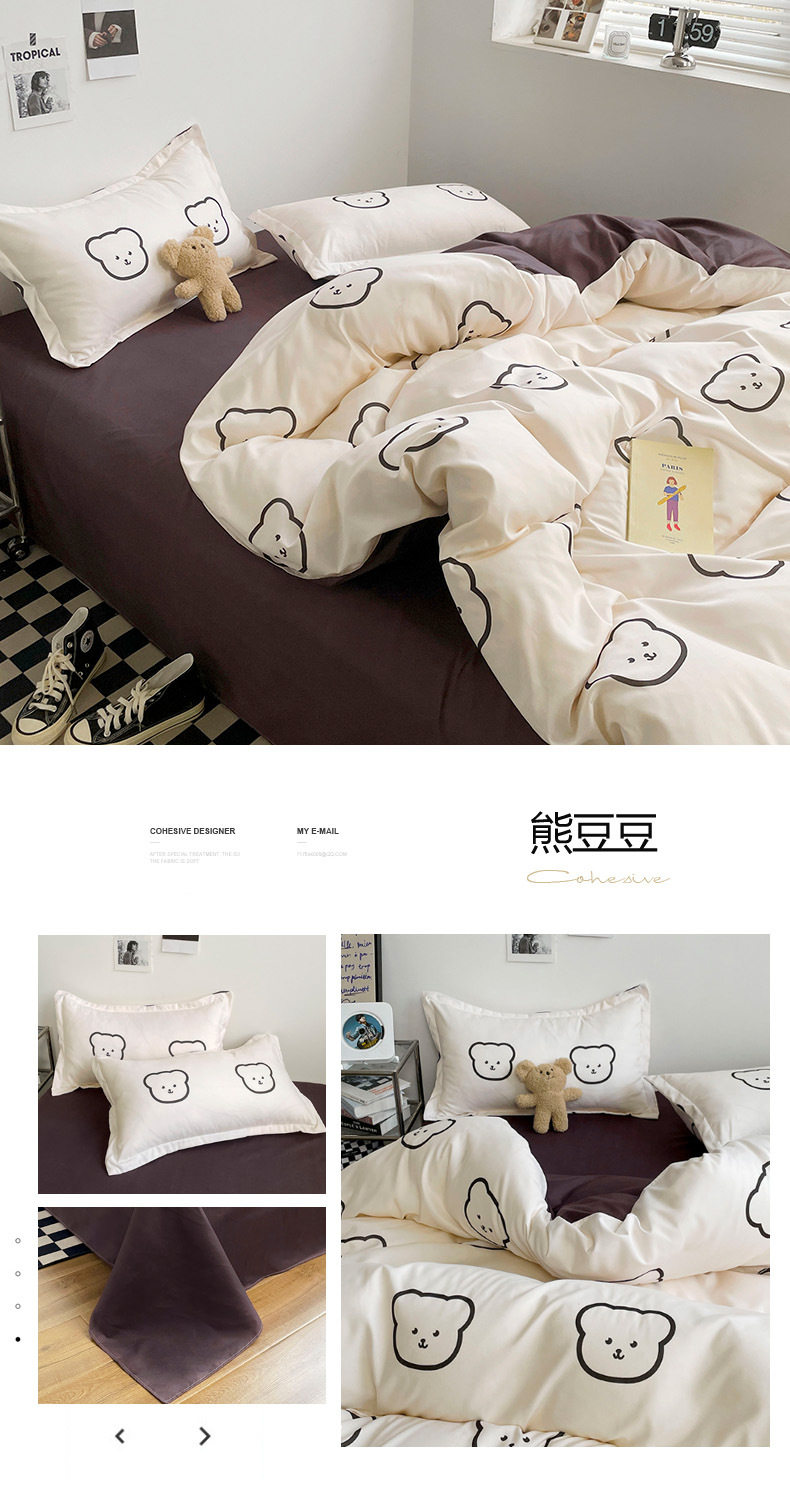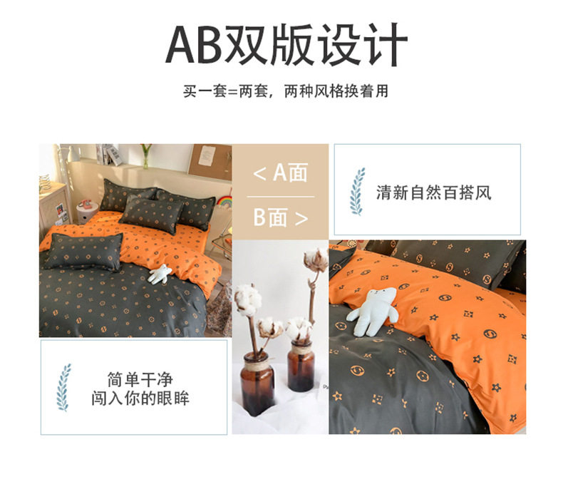 | Dimensions | 1.0m bed (three-piece set) quilt cover 150x200,1.5m bed (set of four) quilt cover 150x200,1.8m bed (set of four) quilt cover 180x220,2.0m bed (set of four) quilt cover 200x230,2.2m bed (set of four) quilt cover 220x240 |
