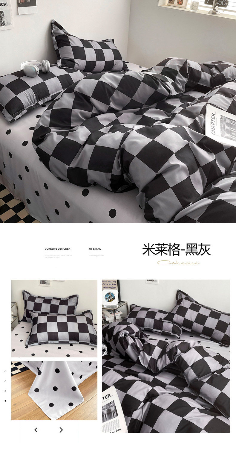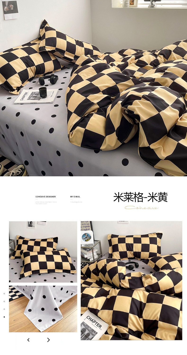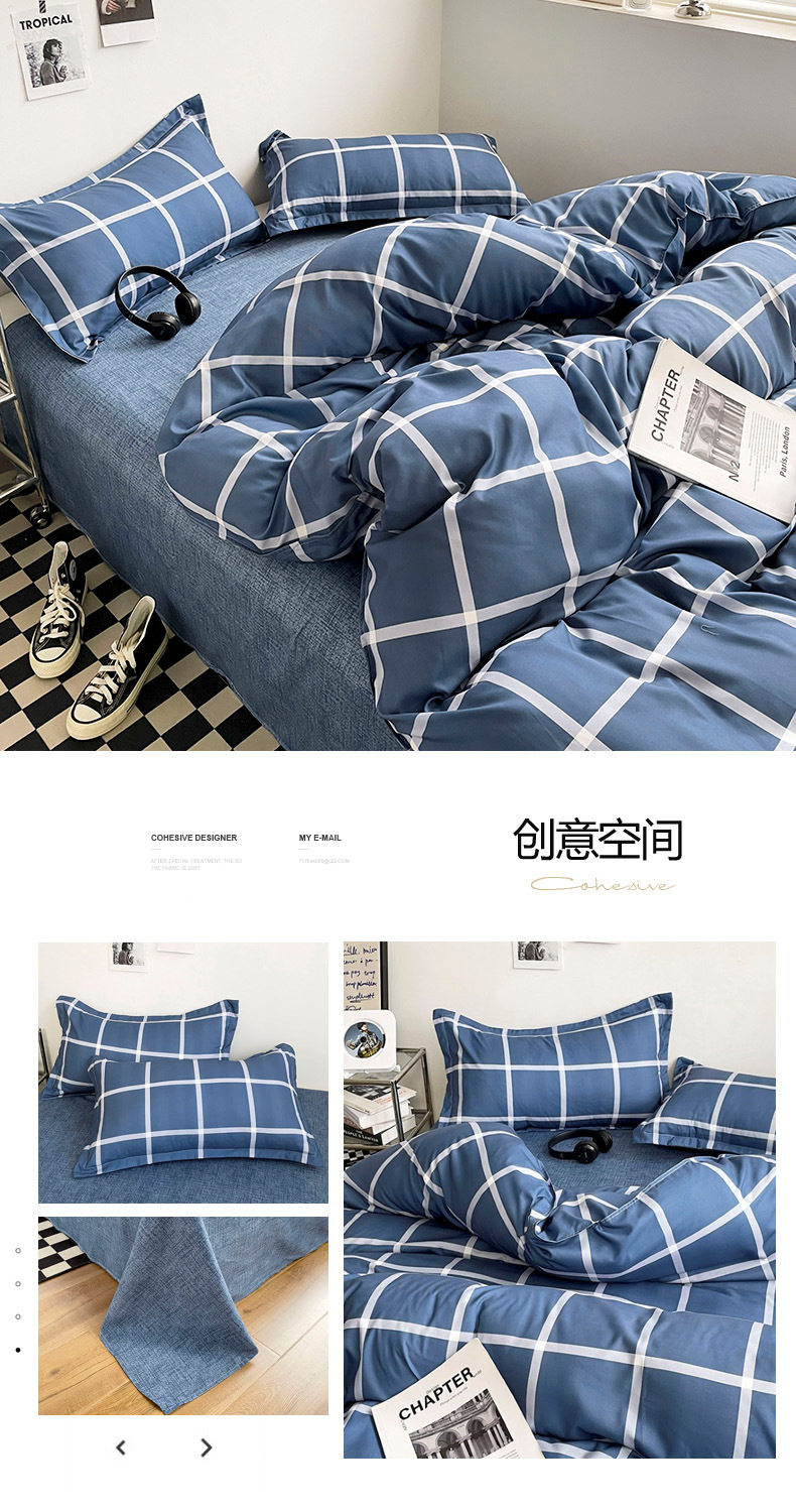 Aloe Vera Cotton Brushed Four-Piece Set Men's Plaid Stripesd Student Dormitory Three-Piece Bed Bed Sheets Quilt Cover Machine Washable Bed