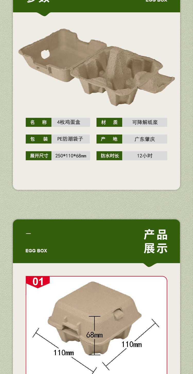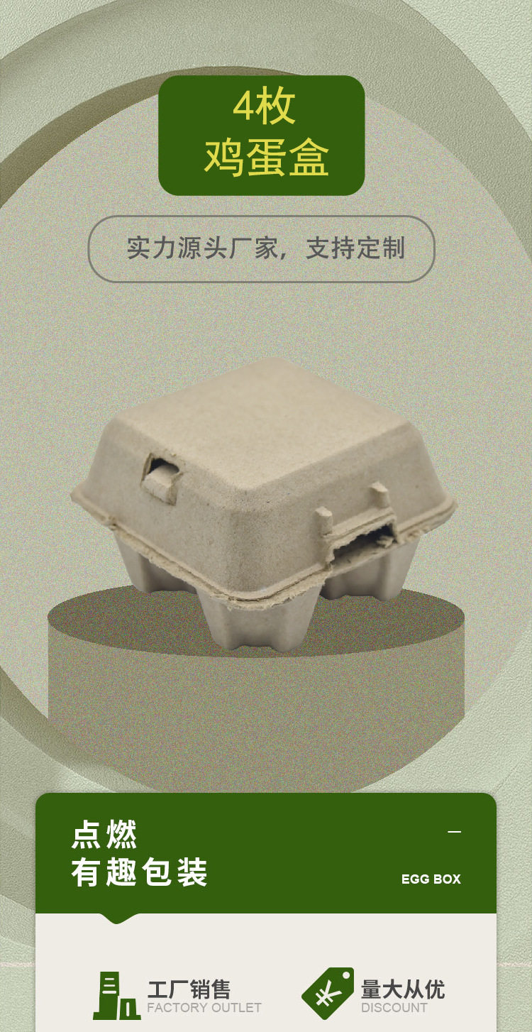 Xiangsen Factory Direct Supply Gray 4-Piece Egg Carton Fully Degradable Pulp Colorfuled Egg Carton Egg Tray Environmentally Friendly