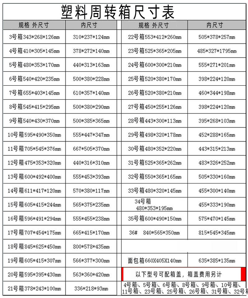 | Specification model | Box 3 343*268*126mm,4# box 410*305*145mm,5# Box 480*353*170mm,6# box 540*420*235mm,7# box 655*403*145mm,Box 8 545*415*295mm,Box 9 540*430*370mm,Box no. 10 600*500*360mm,Box 11 705*545*376mm,12 box 475*353*320mm,14# Box 611*417*120mm,15# box 605*415*244mm,16# Box 600*500*300mm,17# box 707*454*175mm,Box 18 845*625*450mm,Box no. 19 605*415*307mm,Box 20 595*395*430mm,21 Box 378*243*100mm,Box 22 553*412*260mm,23# box 525*365*205mm,24#Box 600*300*210mm,25# box 520*380*170mm,26# box 520*380*210mm,27# box 450*255*126mm,Box no. 28 443*300*113mm,Box no. 29 498*320*178mm,Box no. 30 480*352*220mm,Box no. 31 525*365*262mm,Box no. 32 550*365*165mm,33# Box 480*320*145mm,Cup box 480*330*143mm,200L water tank 800 × 590 × 610,13# Box 600*492*400mm,4# box cover 42*32*2cm,5# box cover 50*37*2cm,6#89 box cover 55*43*2cm,10#1316 box cover 62*52*2cm,11# box cover 72*56*2cm |