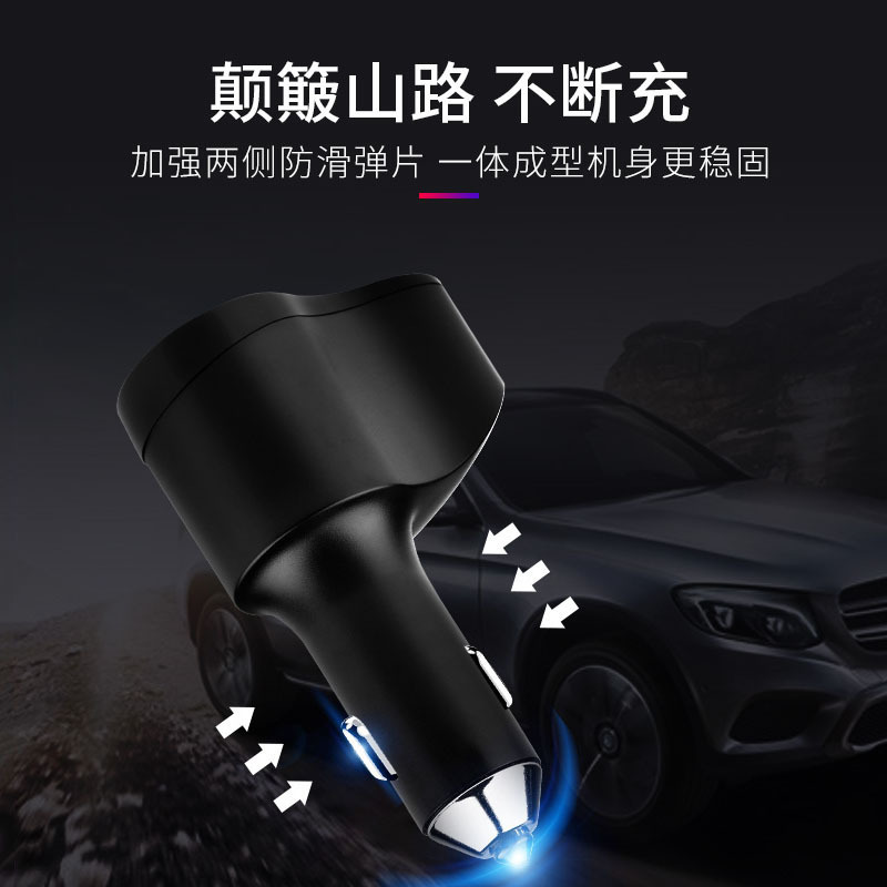 Cross-Border Popular Car Charger with Voltage and Current Detection, One-To-Two Cigarette Lighter Adapter, Dual USB Fast Charging for Mobile Phones