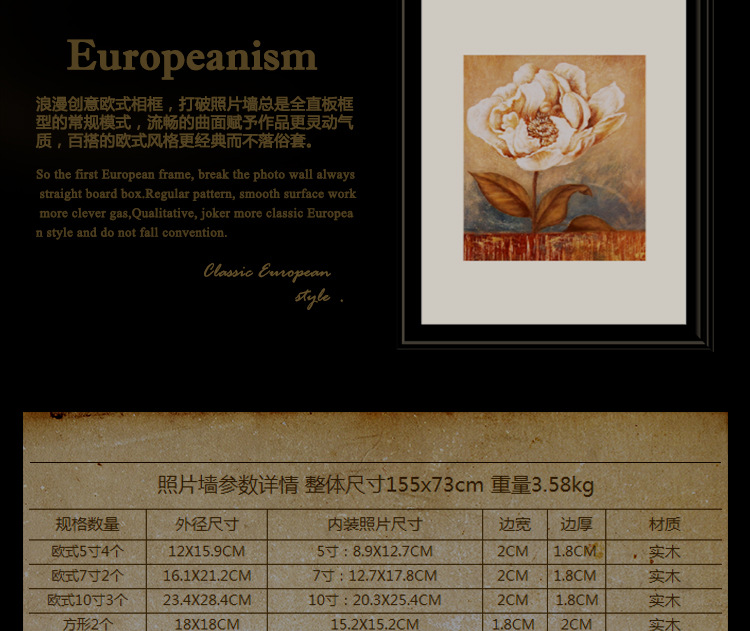 Free Shipping 9044 Malevich European Style Solid Wood Photo Frame Wall Creative Photo Wall Combination Living Room Background Decorative Painting