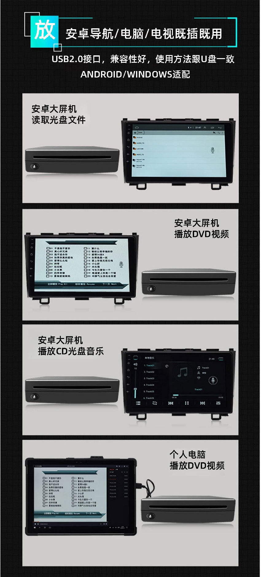 Car external Android large screen navigation DVD disc box/Universal USB home DVD CD player