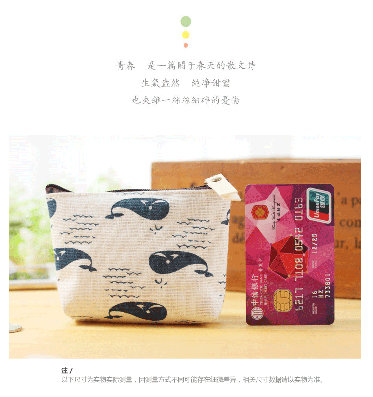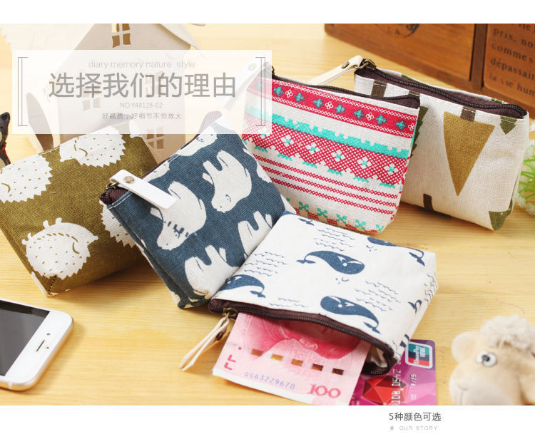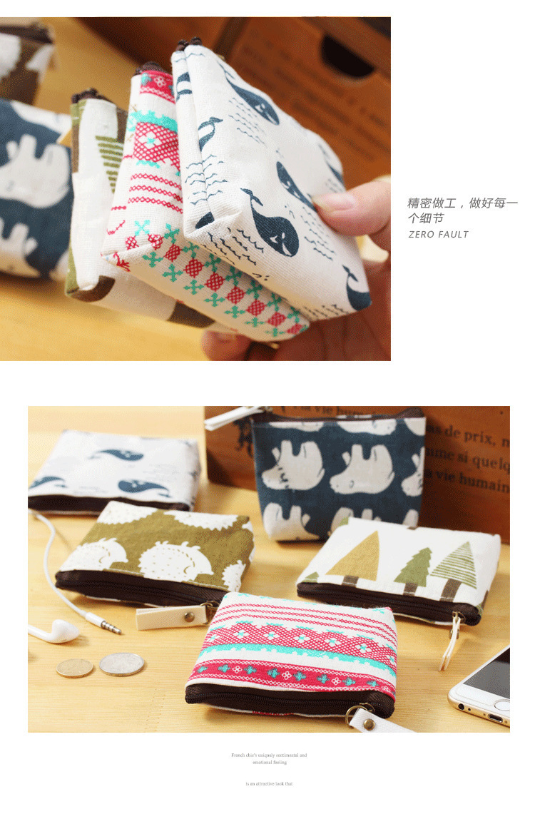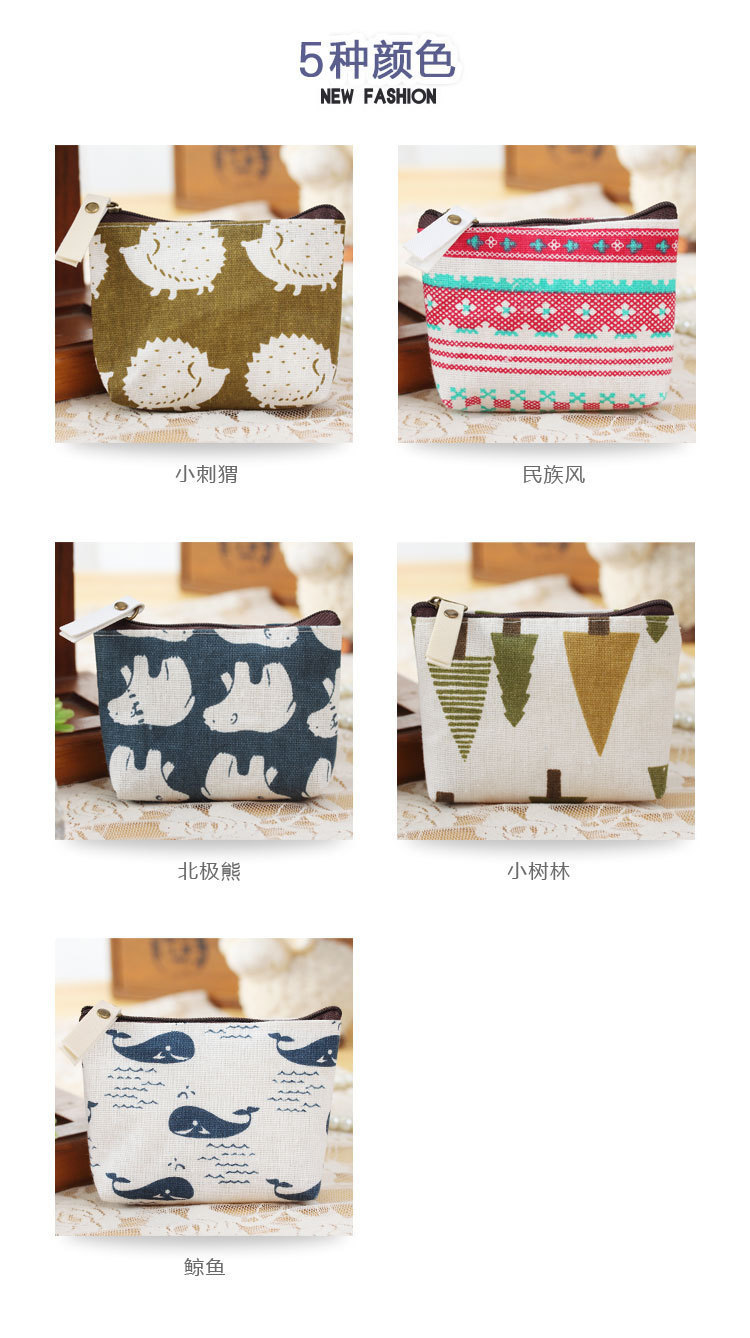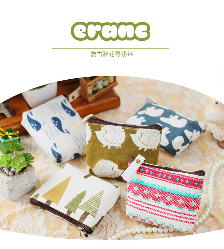 Vintage Korean Style Cotton Linen Small Fresh Coin Purse Coin Bag Simple Fashion Canvas Cartoon Key Bag Storage Bag