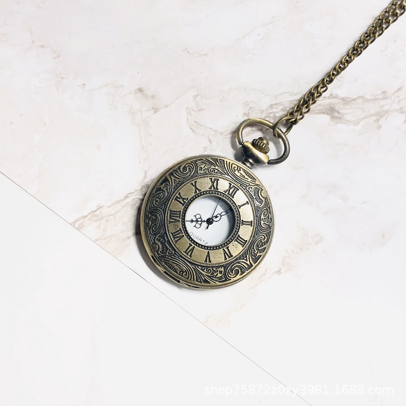 Retro Style Bronze Roman Simple Pocket Watch Classic Memorial Memory Old Hanging Watch Hot Selling Chain Quartz Watch