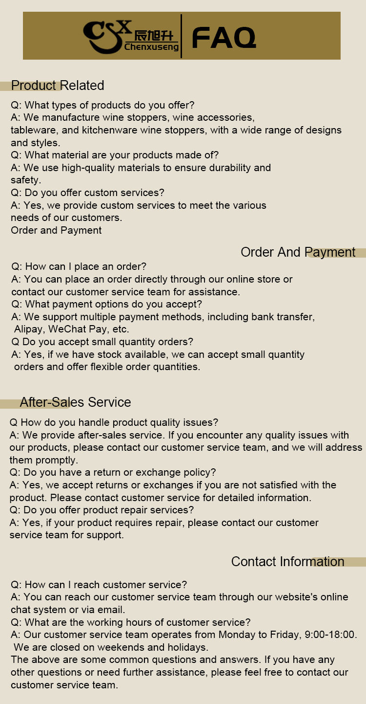 | Color | Yellow,Black,Rose Gold,Wire drawing,mirror light,Cover customization,Silver,long mouth gold,long mouth black,long mouth rose gold,Long mouth drawing,With silicone zinc alloy bronze,ABS rose gold,Plastic ABS-silver,1-Vacuum plug black with scale,Vacuum champagne stopper without scale,Vacuum plug silver,Large-Vacuum Plug silver,Inflatable plug silver,Inflatable plug black,Inflation plug yellow,Single Ear Champagne Plug,small size champagne stopper |