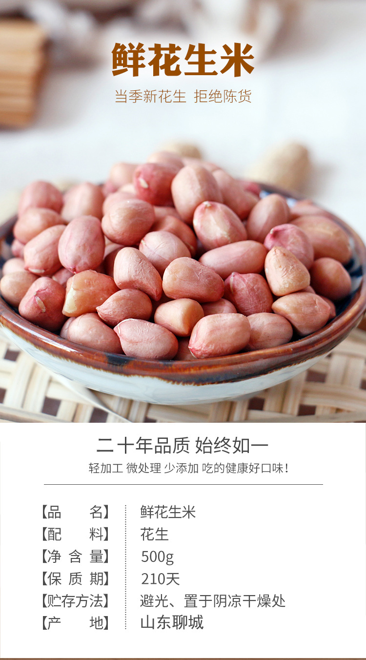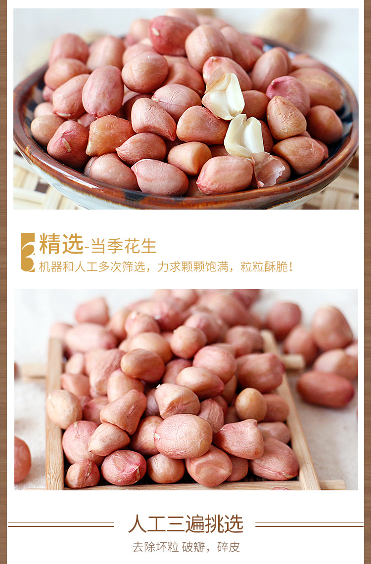 Shandong Shelled Red-Skinned Dried Peanuts 330g Raw Peanuts Farm-Produced Peanut Kernels Wholesale Vacuum-Packed