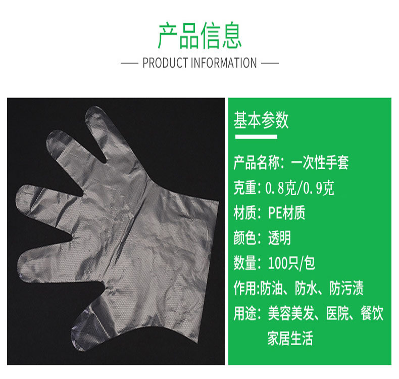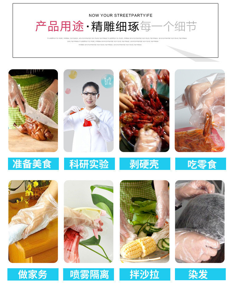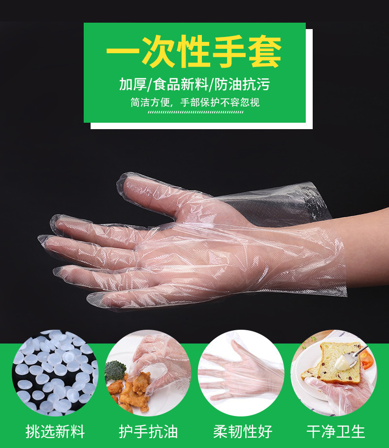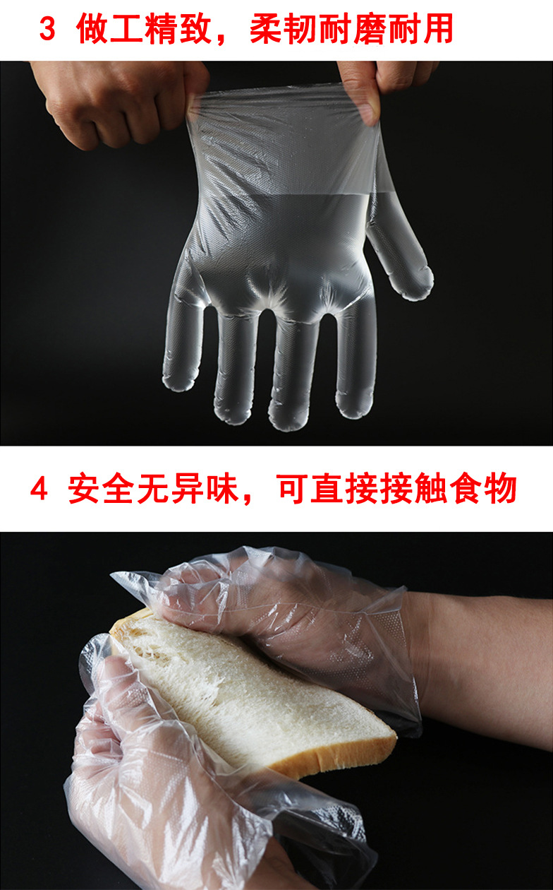 Disposable Pe Plastic Gloves, 100 Pieces, Thin Film, Food Grade, Catering, Lobster, Labor Protection
