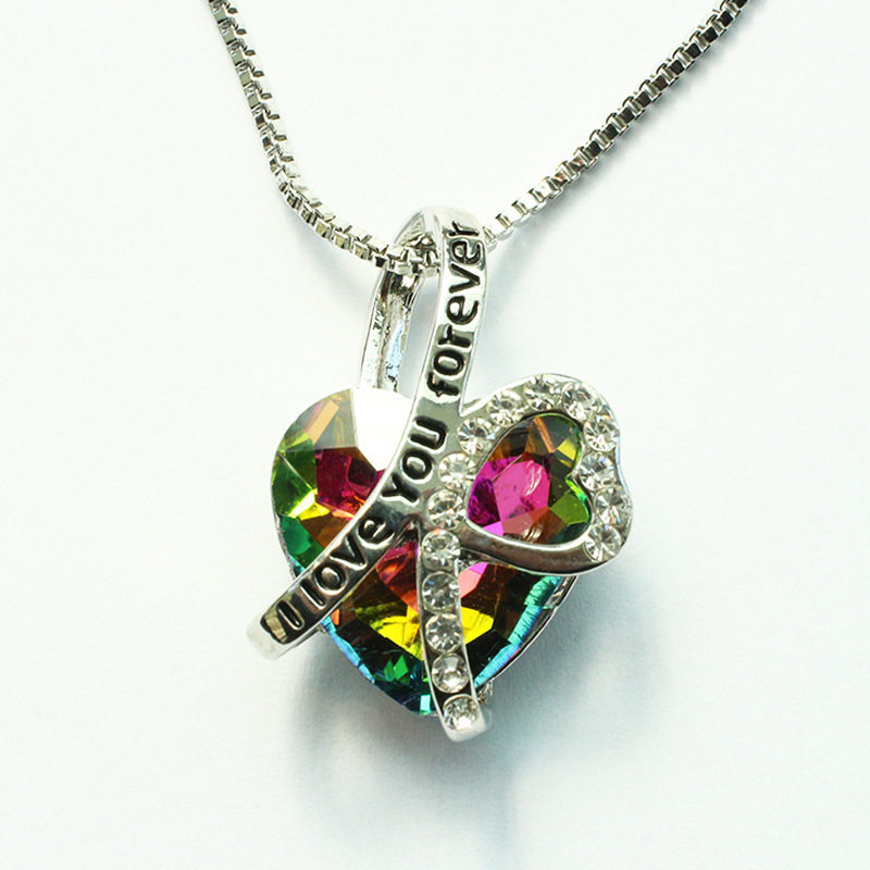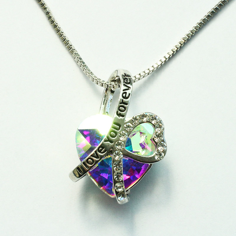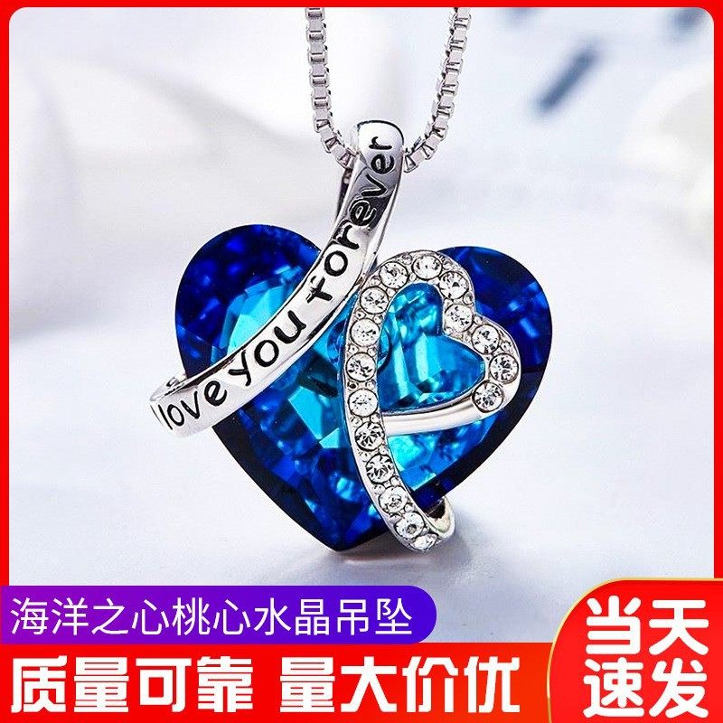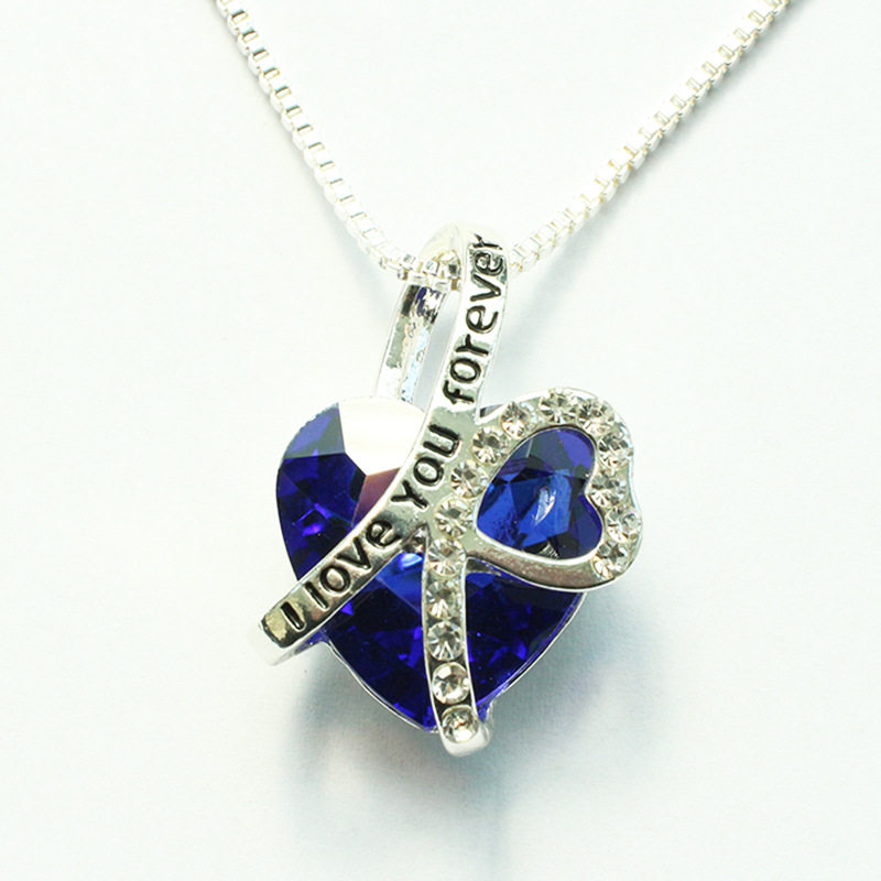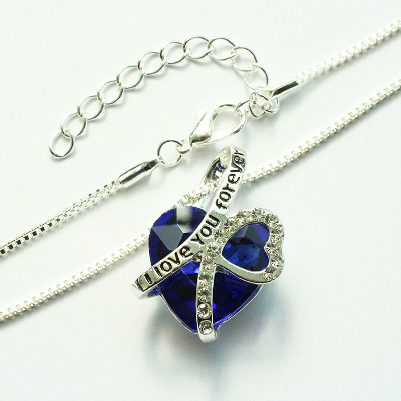 wish New love necklace I love you forever ocean heart pendant Crystal clavicle chain wholesale