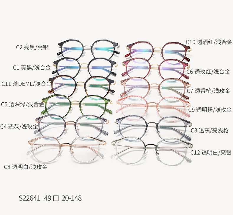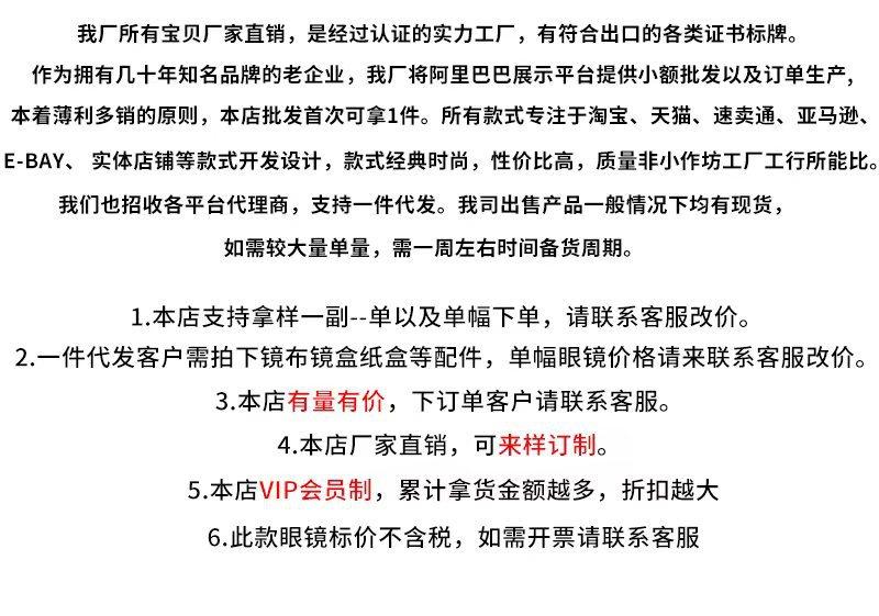 | Frame color | C1 bright black/light alloy,C2 bright black/bright silver,C3 transparent gray/bright light gun,C4 transparent gray/light rose gold,C5 transparent dark green/light alloy,C6 transparent rose red/light alloy,C7 transparent champagne/light rose gold,C8 transparent white/light rose gold,C9 transparent pink/light rose gold,C10 transparent wine red/light alloy,C11 tea deml/light alloy,C12 transparent white/bright silver,C13 gradient coffee,C14 gradient purple,C15 gradient blue,C16 light green |
