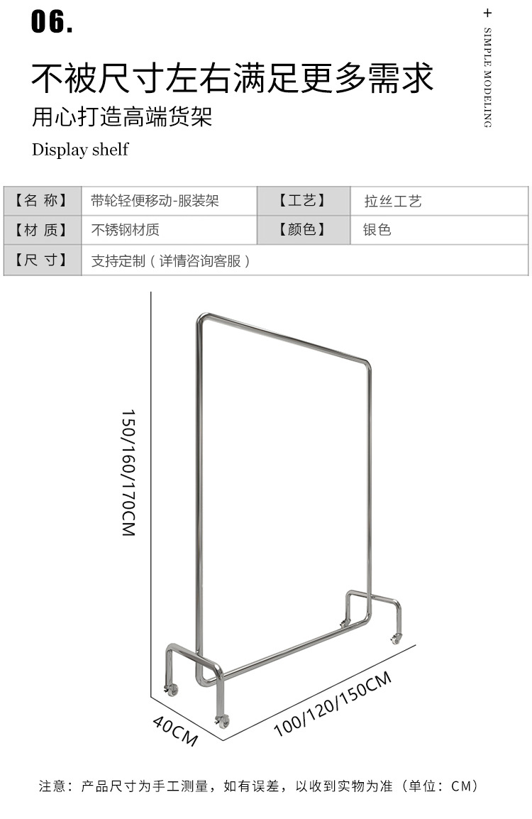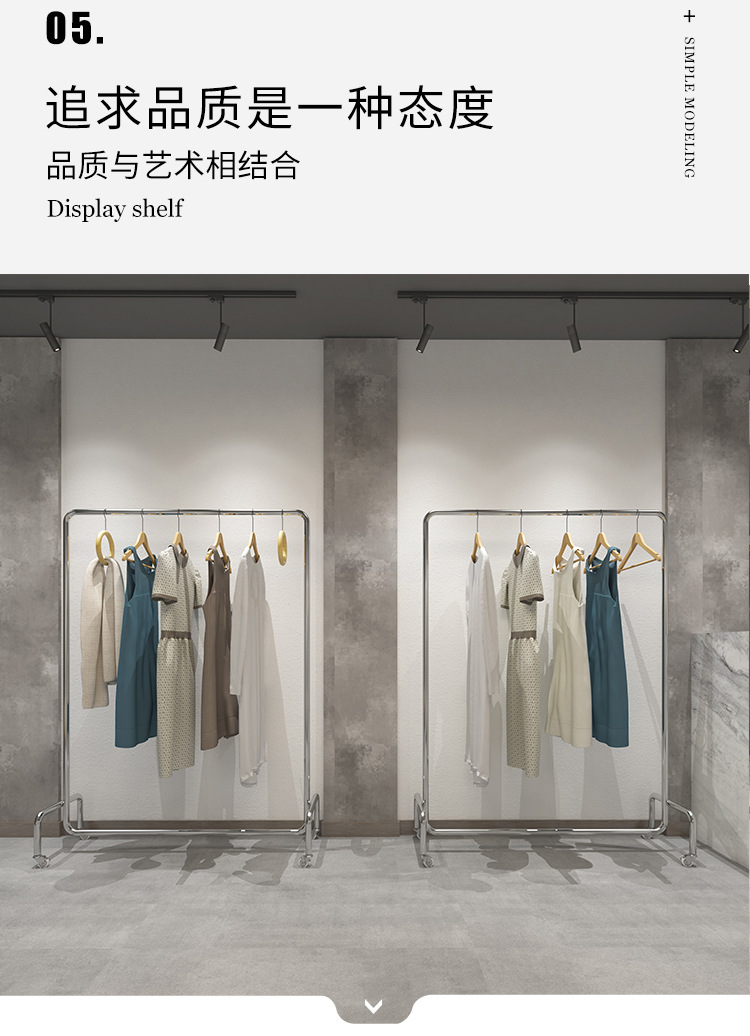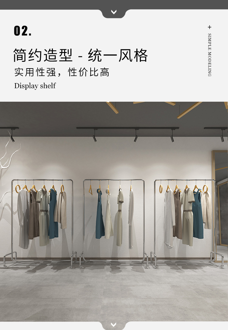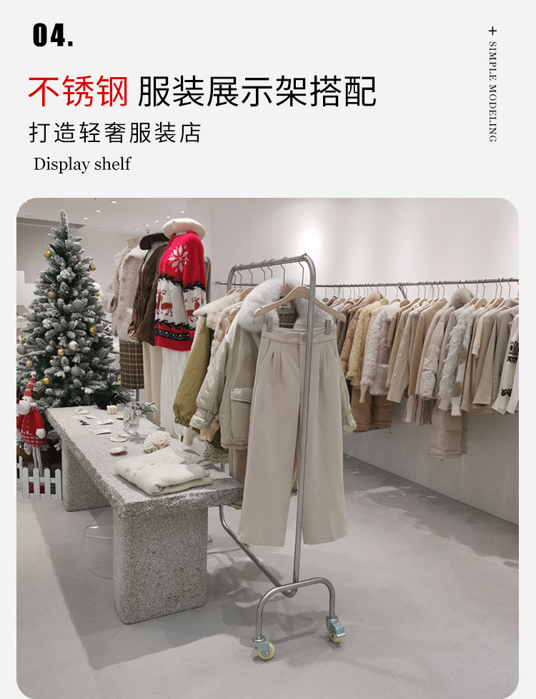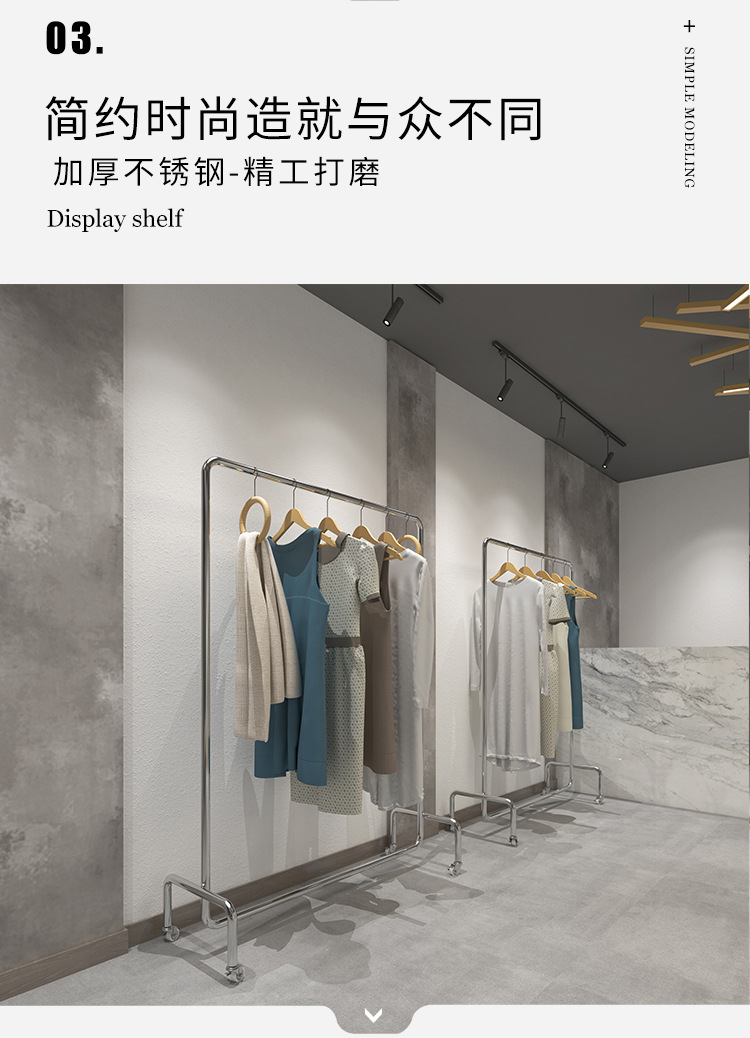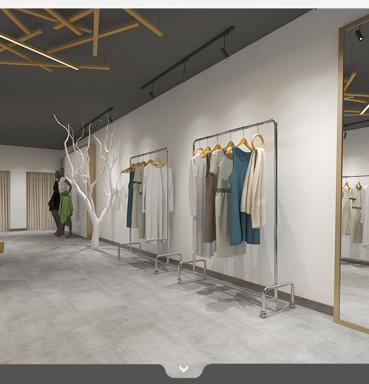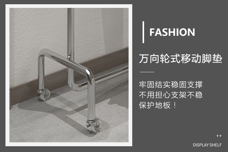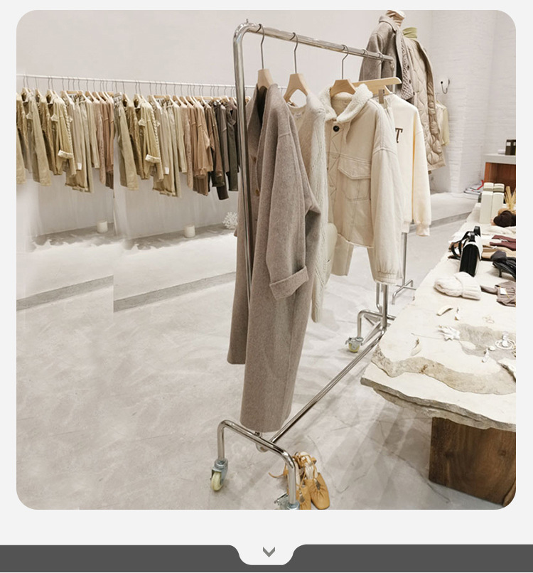 Clothes hanger floor wholesale clothing store display rack stainless steel movable women's clothing store clothes hanging pole gantry coat rack