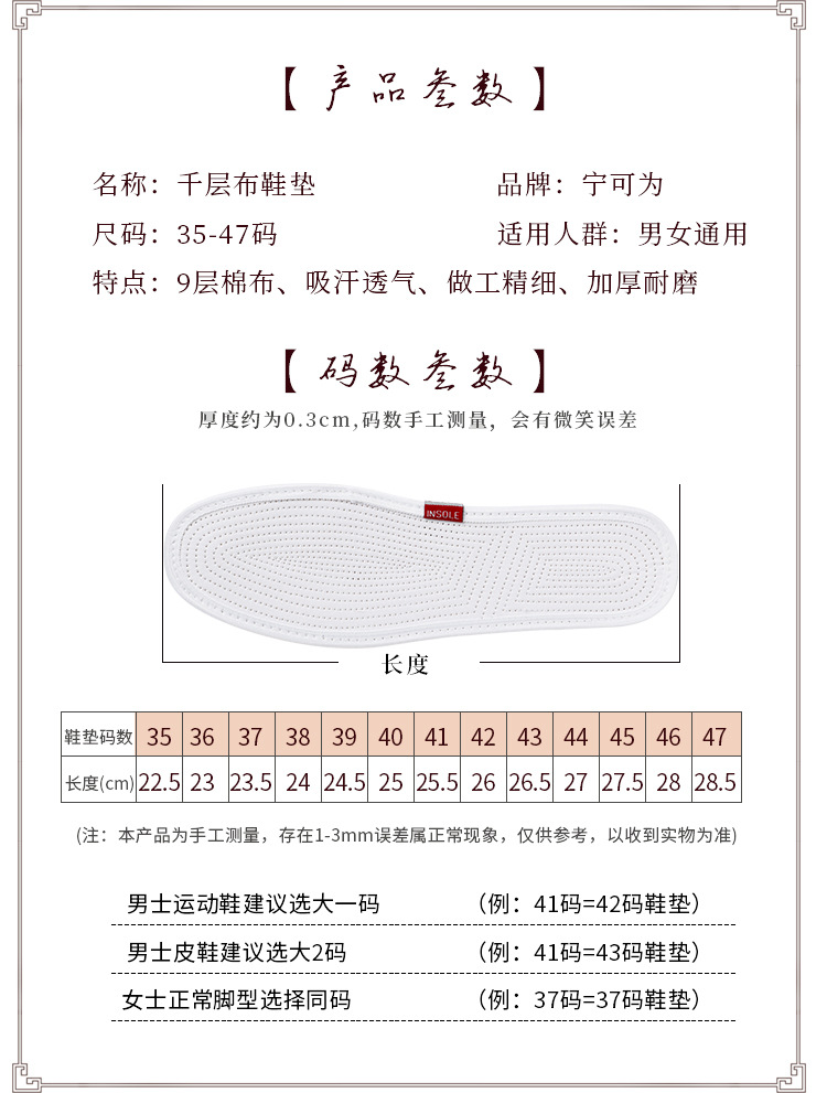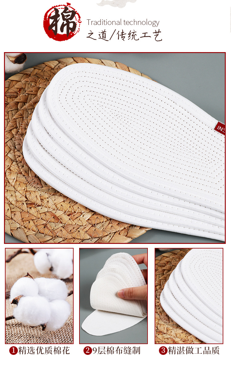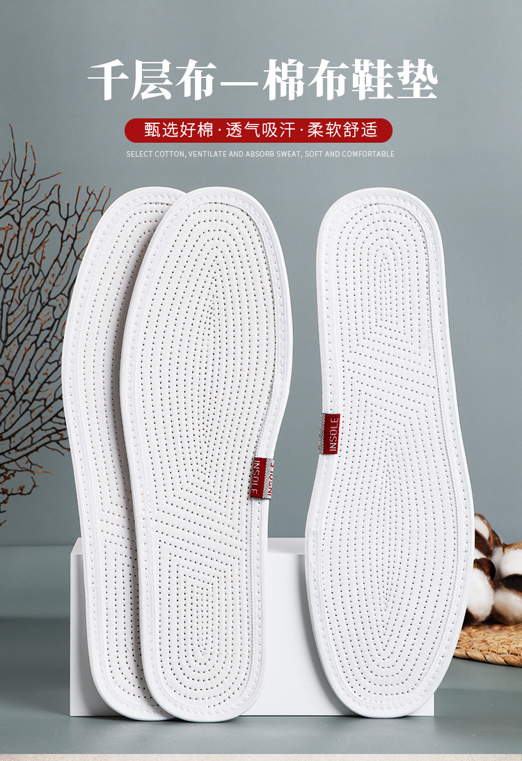 Cotton insole sweat absorbent breathable deodorant thousand layer cloth insole wholesale factory direct nine layer cloth comfortable and durable men and women
