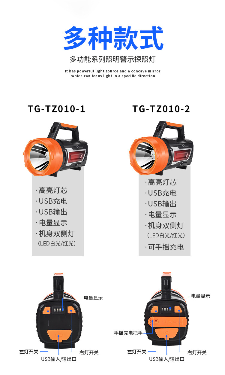 | Color | Tz010 regular style,Tz03004 portable camping light,Tz010 hand-cranked power searchlight,Tz02602 portable searchlight with double side lights without taillights that can be charged by hand,Tz02604 portable searchlight cylindrical side light without taillight can be charged by hand,Tz01501 explosion-proof portable lamp basic model tail electronic display without measured light,Tz01502 explosion-proof searchlight standard model,Tz01503 explosion-proof searchlight high configuration,Tz01504 warm light double side light tail red light marquee + alarm |
