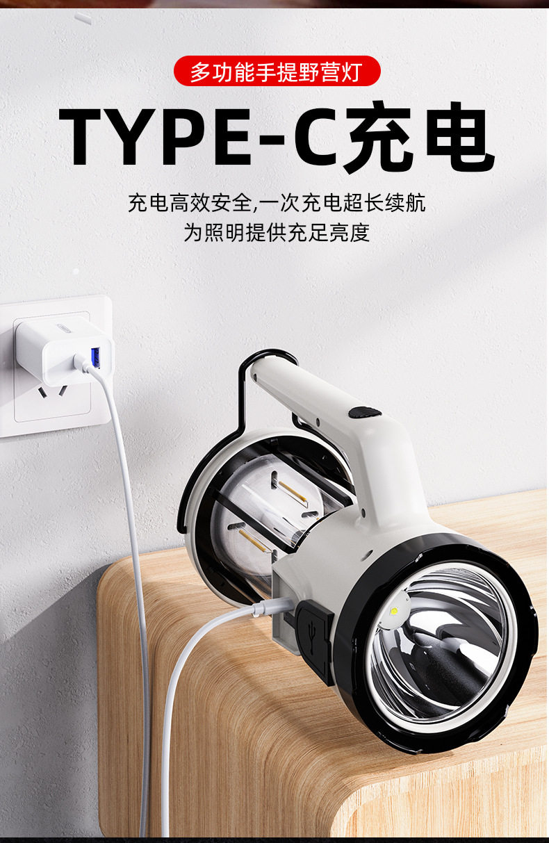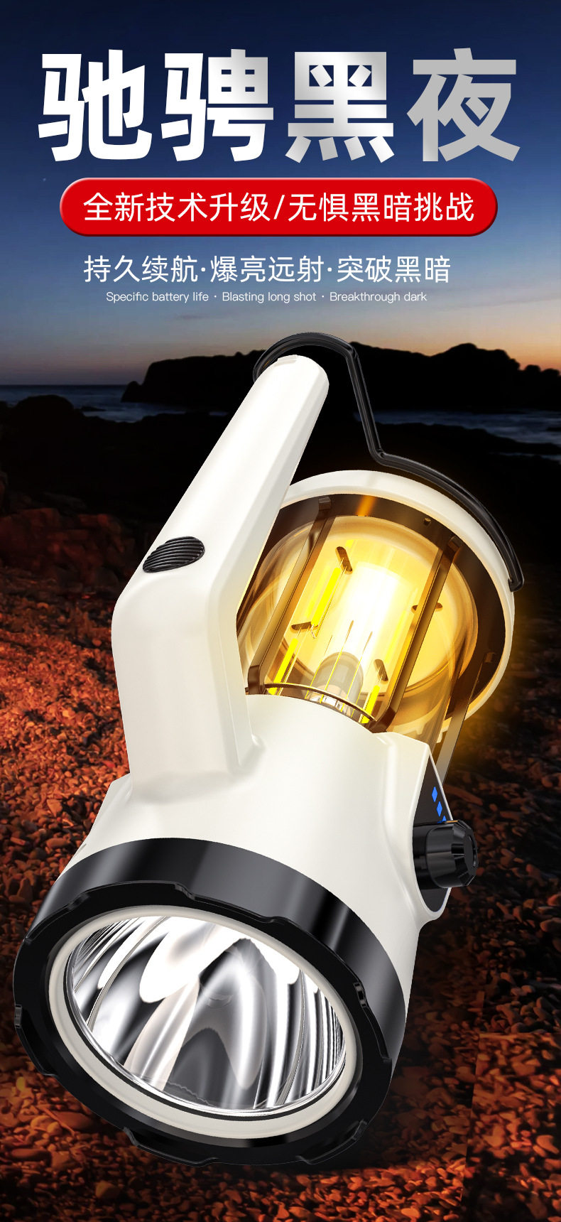 Cross-border new multi-functional portable lamp double light source camping lamp outdoor camping tent lamp strong flashlight searchlight