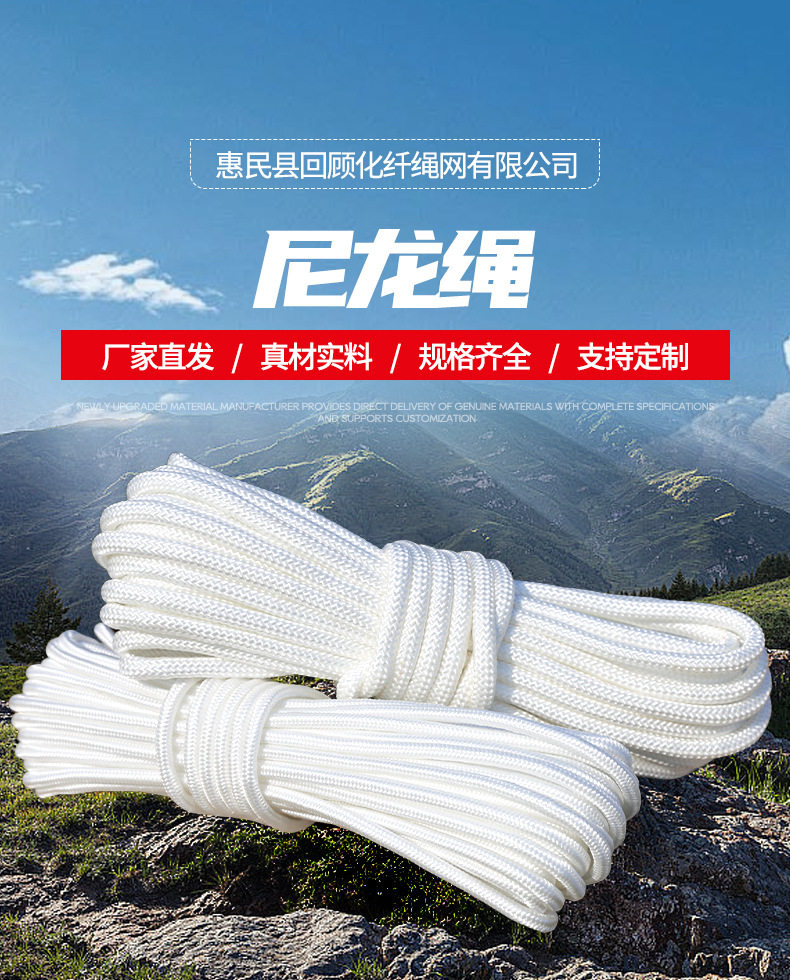 Factory wholesale nylon rope white cored rope truck windproof binding rope tent safety rope polypropylene braided rope
