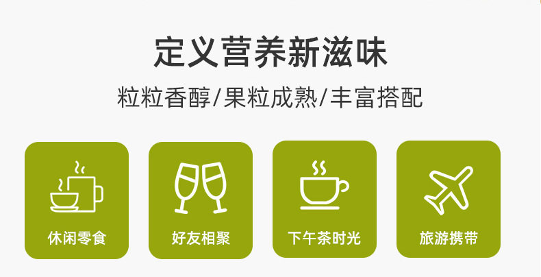 | Packaging specifications | 110g pistachio,110g cashew nuts,110g bigenfruit,110g almond,110g almond,110g Hawaii fruit |