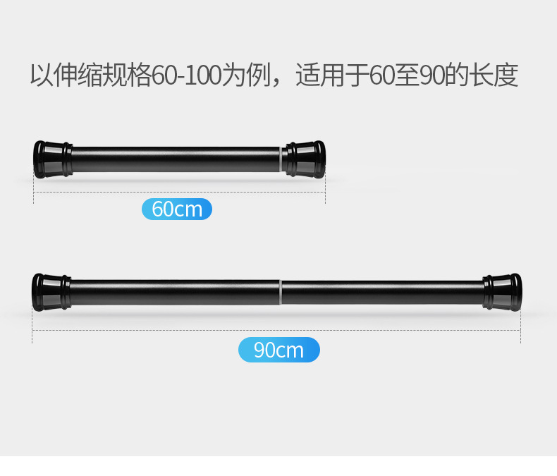 Punch-free black and white rod bathroom shower curtain rod clothes drying Rod adjustable curtain rod wardrobe strut in stock wholesale