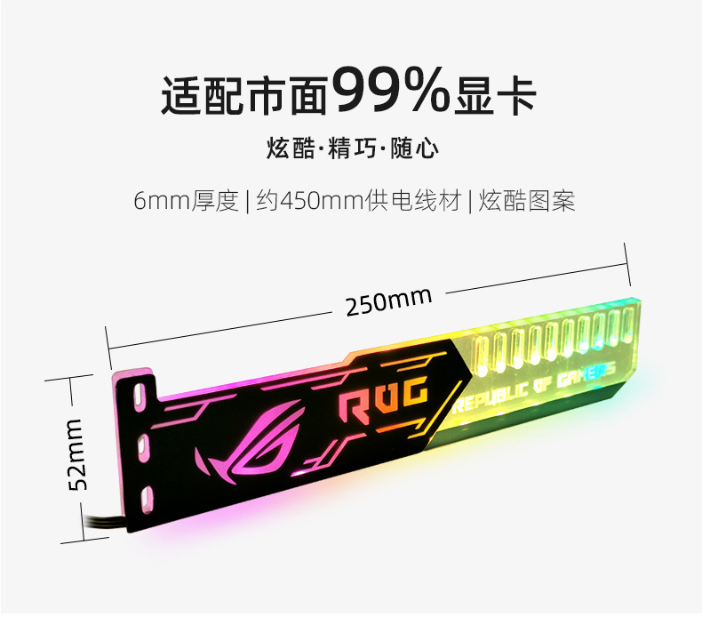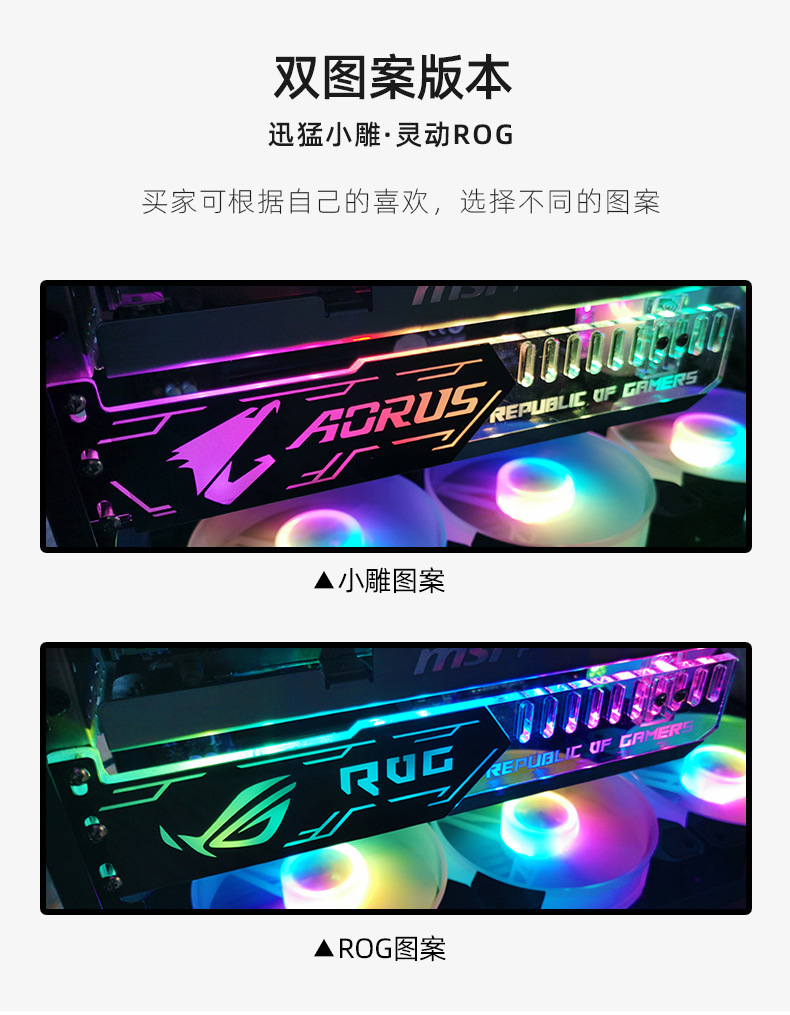 | Color | Rog pattern 25cm graphics card bracket (large 4pin interface),Small carving pattern 25cm graphics card bracket (large 4pin interface),Rog pattern 28cm graphics card bracket (large 4pin interface),Big eagle pattern 28cm graphics card bracket (small 4pin interface),Ms1 pattern 28cm graphics card bracket (large 4p automatically changes color),30cm magnetic double-sided luminous aluminum alloy light strip (5v argb),28cm magnetic diamond light strip (5v argb) black,28cm magnetic diamond light strip (5v argb) white,40cm magnetic soft light strip (5v argb),Standard controller,Music/motherboard synchronization controller,Gt8 metal bracket 28cm black [5v multi-interface],25cm small carved graphics card bracket 5v interface,28cm dadi graphics card bracket 5v interface,Gt8 metal bracket 28cm white [5v multi-interface],F1 ultra-thin graphics card bracket black (0.6cm~12.5cm support),F1 ultra-thin graphics card bracket white (0.6cm~12.5cm support),White eagle pattern 28cm graphics card bracket (small 4pin interface),White rog pattern 28cm graphics card bracket (small 4pin interface),White eagle 28cm graphics card bracket (5vargb interface),White rog 28cm graphics card bracket (5vargb interface) |