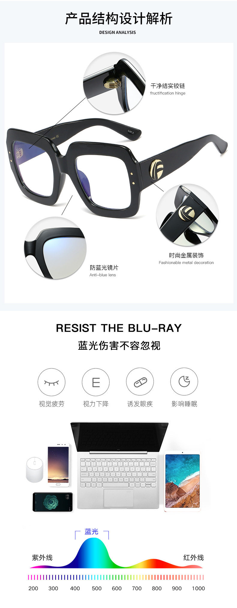 L97394 new large-frame anti-Blue-ray glasses plain-looking slim glasses frame ins trendy flat glasses for women's eyes