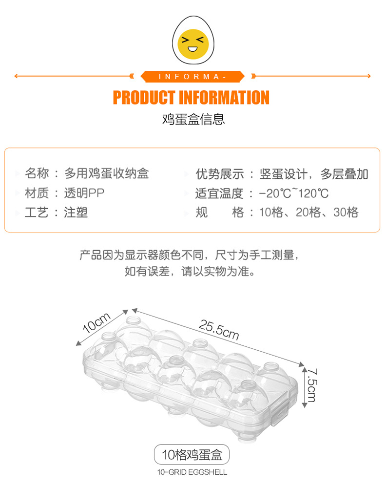 | Dimensions | 10-pack egg box,20-pack egg box,30-pack egg box |