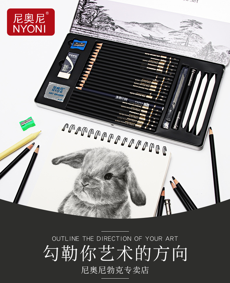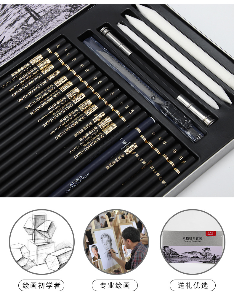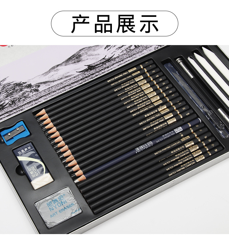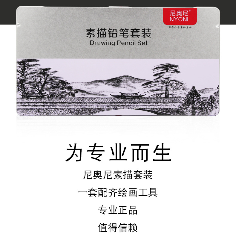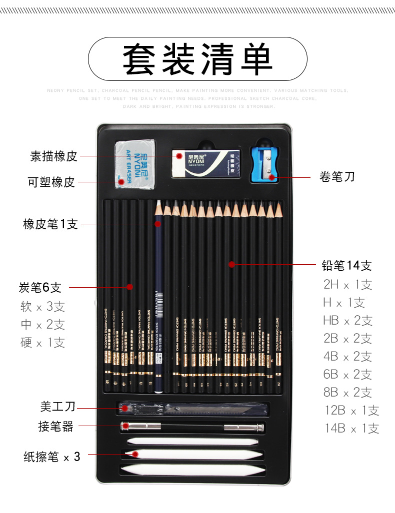Nioni sketch pencil suit charcoal pencil soft medium hard hand drawing painting professional full set sketch painting tools sketch pen