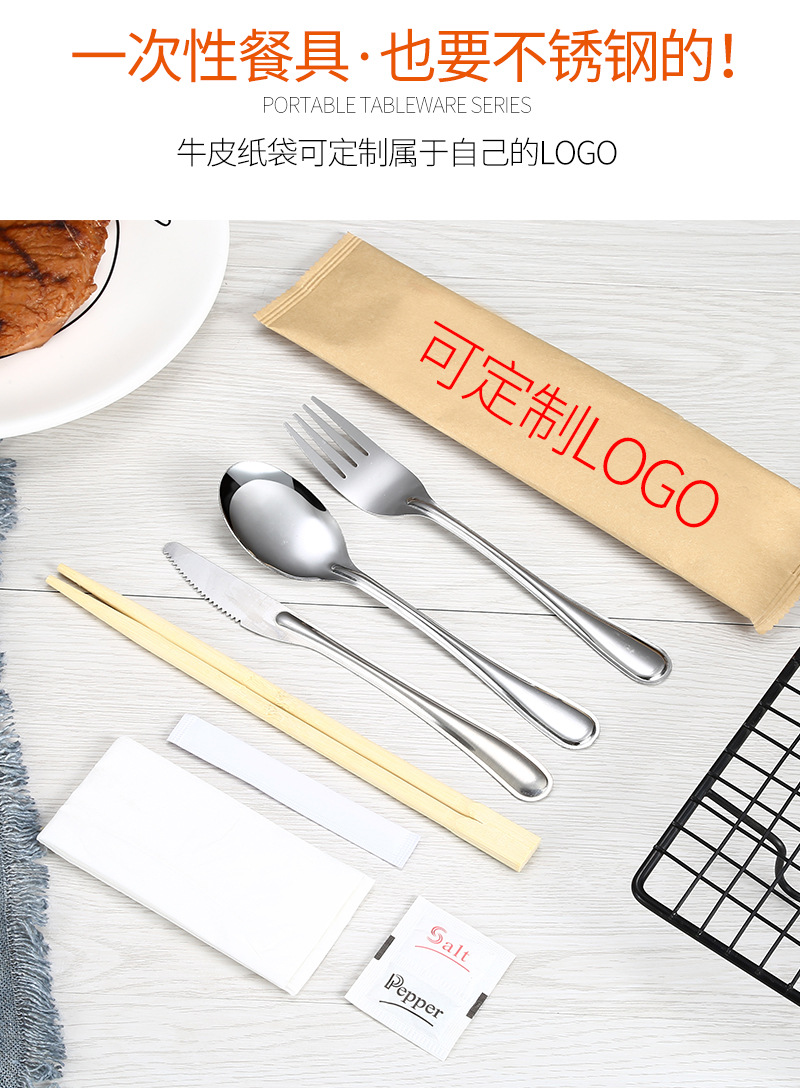 Wholesale Disposable Chopsticks Set Stainless Steel Tableware Set Takeaway Spoon Tableware Pack Disposable Tableware Set