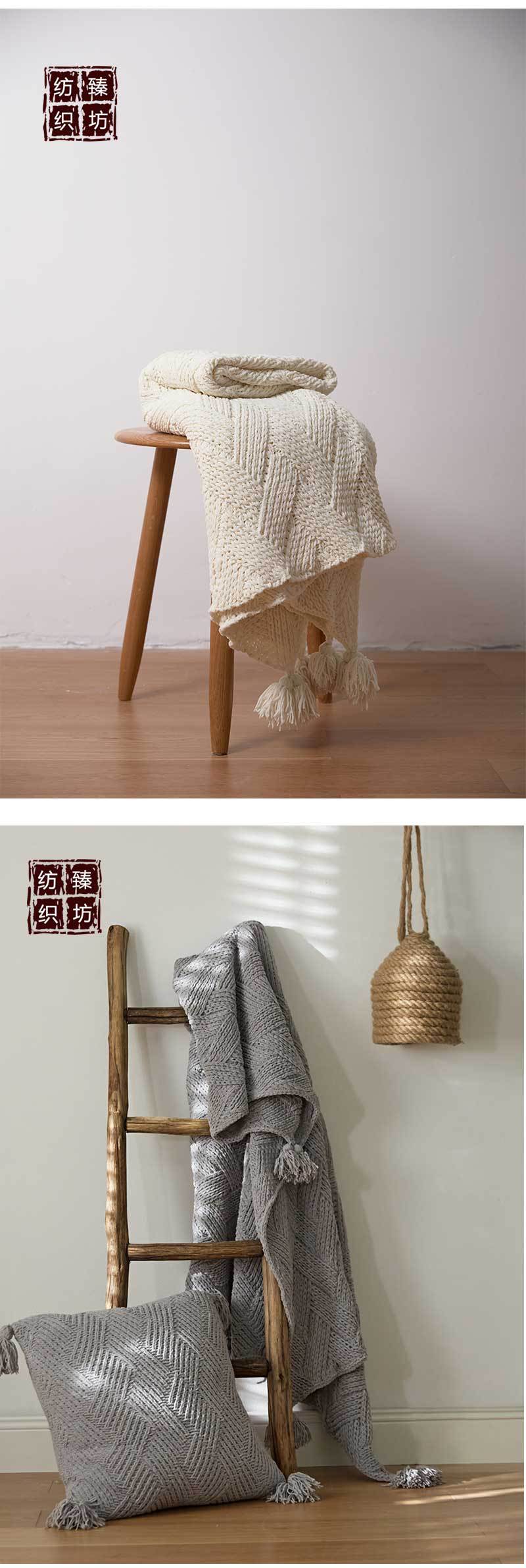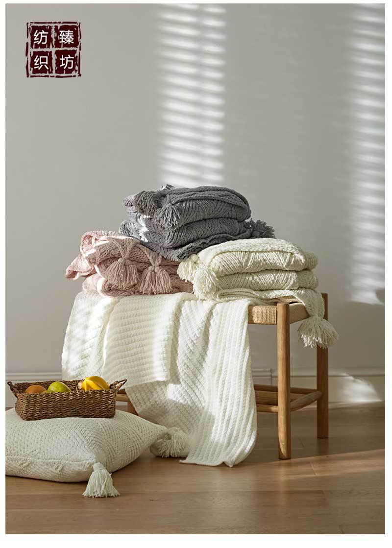 Nordic Simple Handmade Tassel Knitted Blanket Air Conditioning Sofa Blanket Home Soft Accessories Photo Props