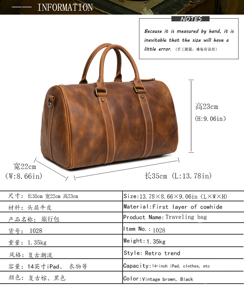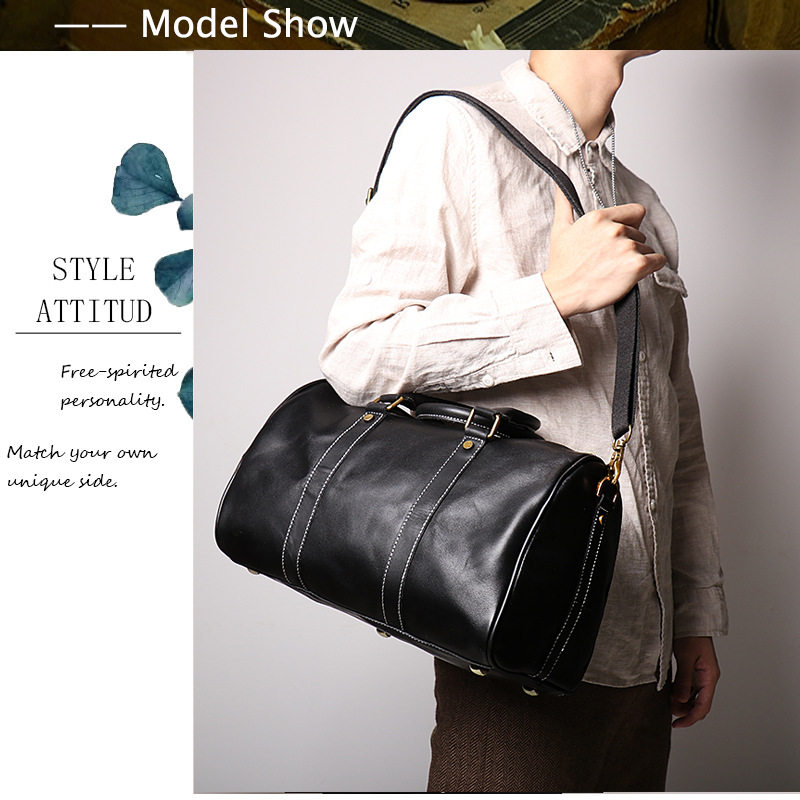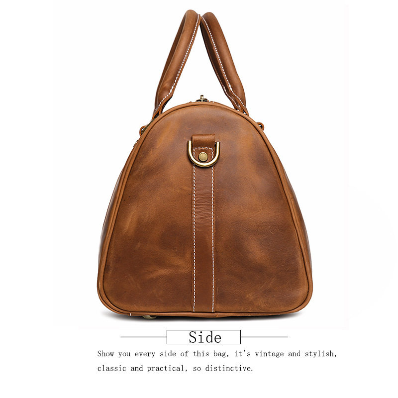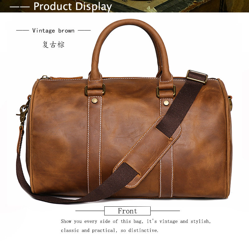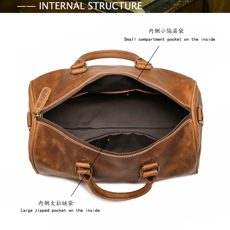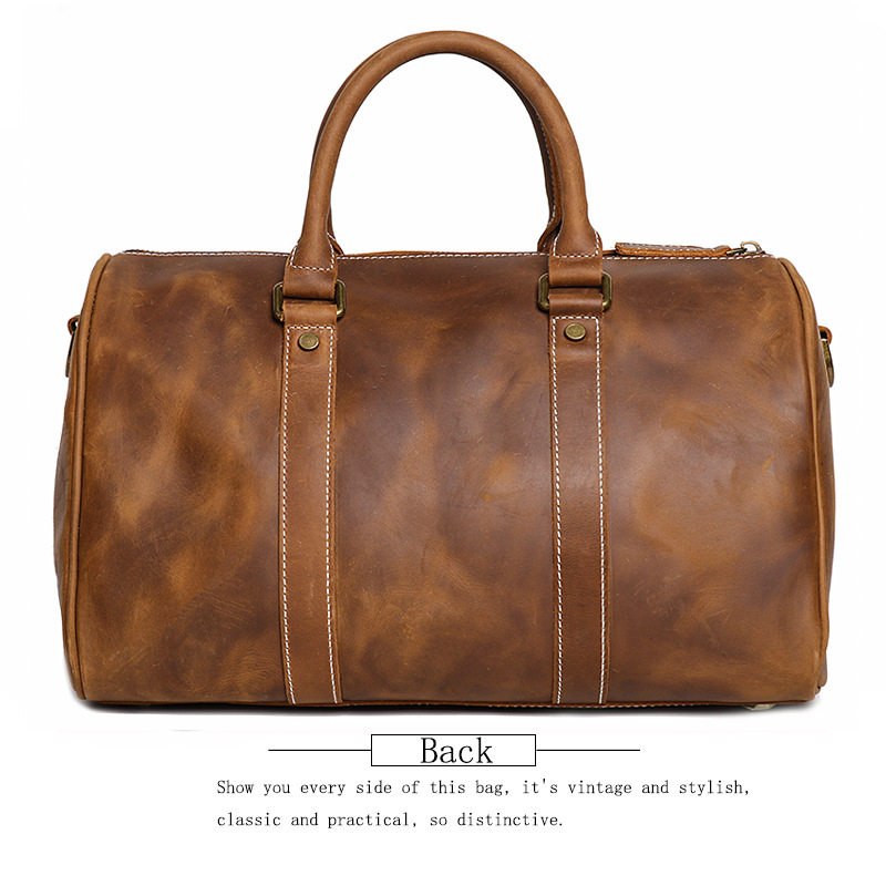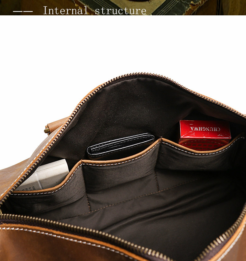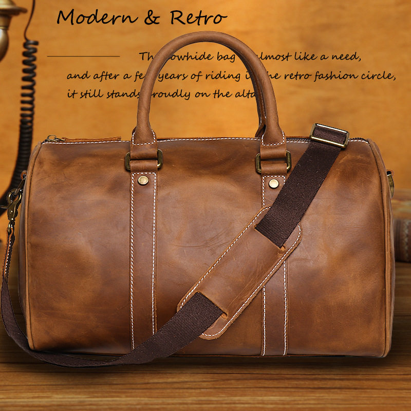 Factory wholesale new men's leather handbag women's Crazy Horse leather short trip travel bag simple shoulder messenger bag