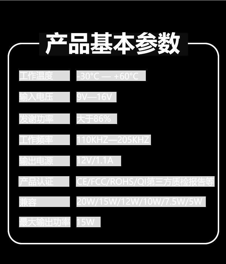 | Product Certification | CE/ROHS/FCC/QI |