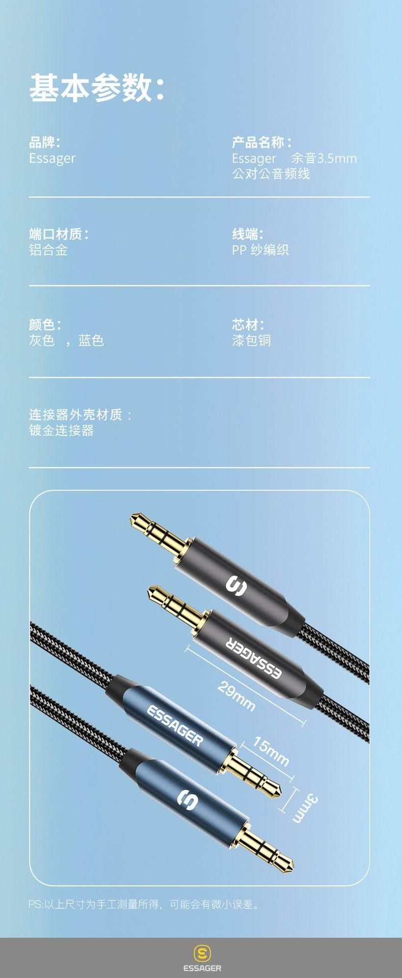 ESSAGER Magic Sound Series 3.5mm Male-to-Male Audio Cable AUX Recorder Cable Car Mobile Phone Audio Cable