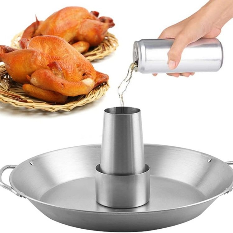 Stainless steel roast chicken plate barbecue plate removable round cone baking plate outdoor picnic BBQ barbecue utensils