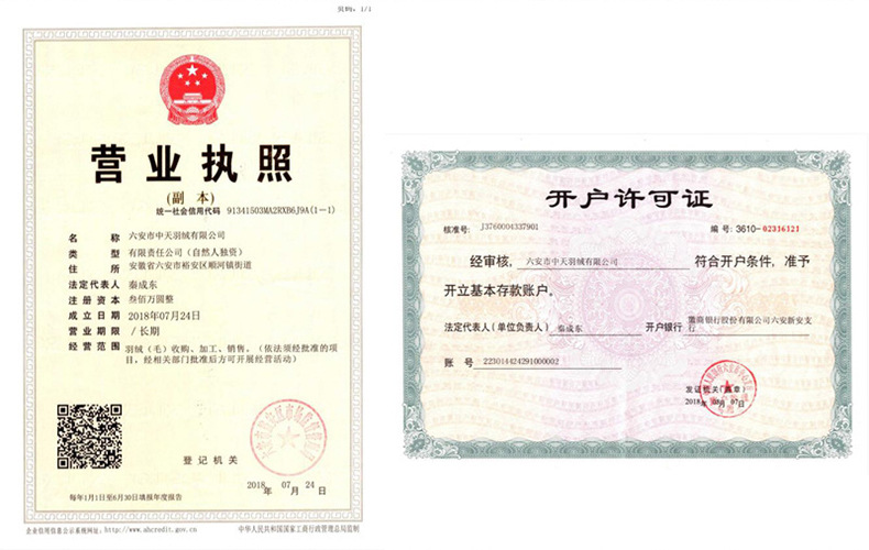 | Origin/manufacturer | Lianan zhongtian down co., ltd |