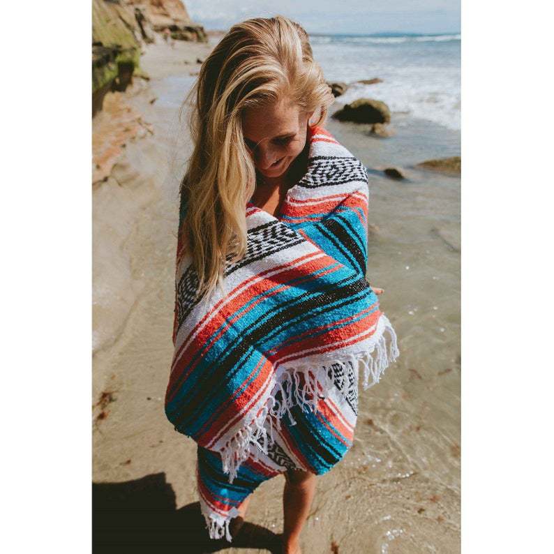 Mexican Geometric Blanket Beach Blanket Stripesd Geometric Picnic Mat Blanket Thick Thread Blanket Yoga Blanket Cotton Blanket