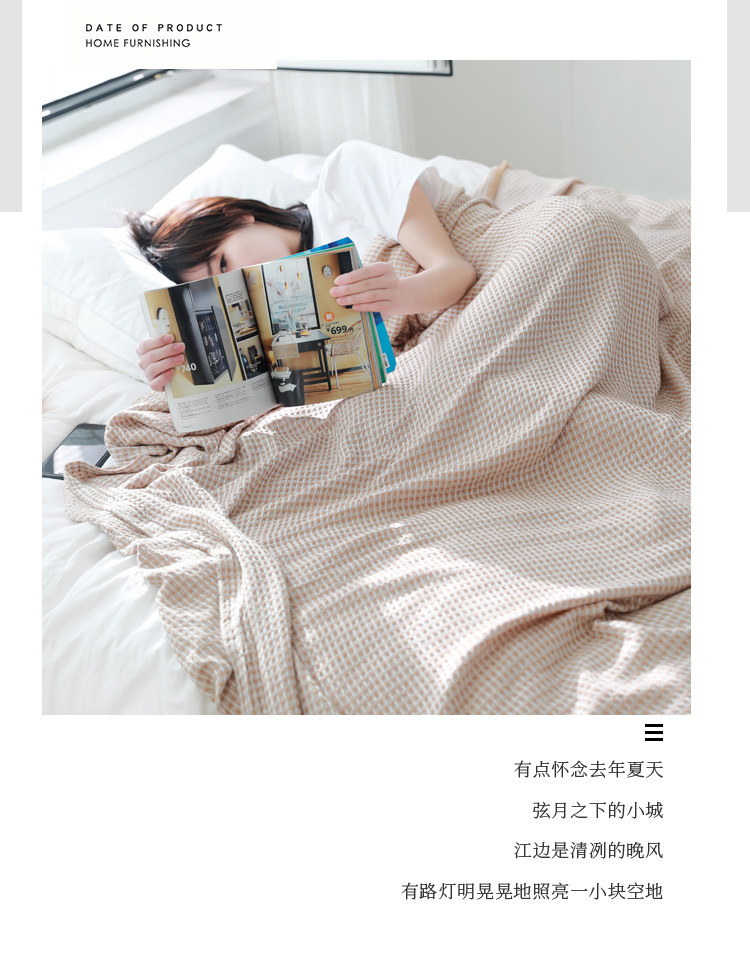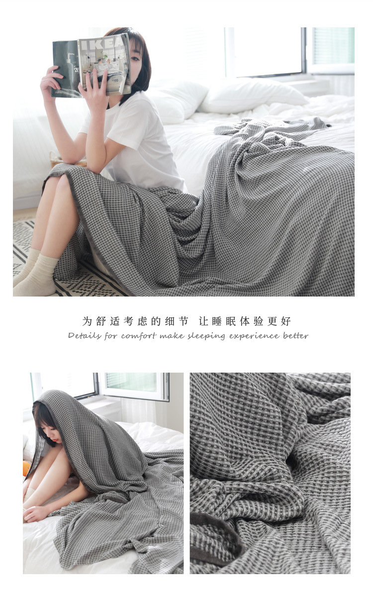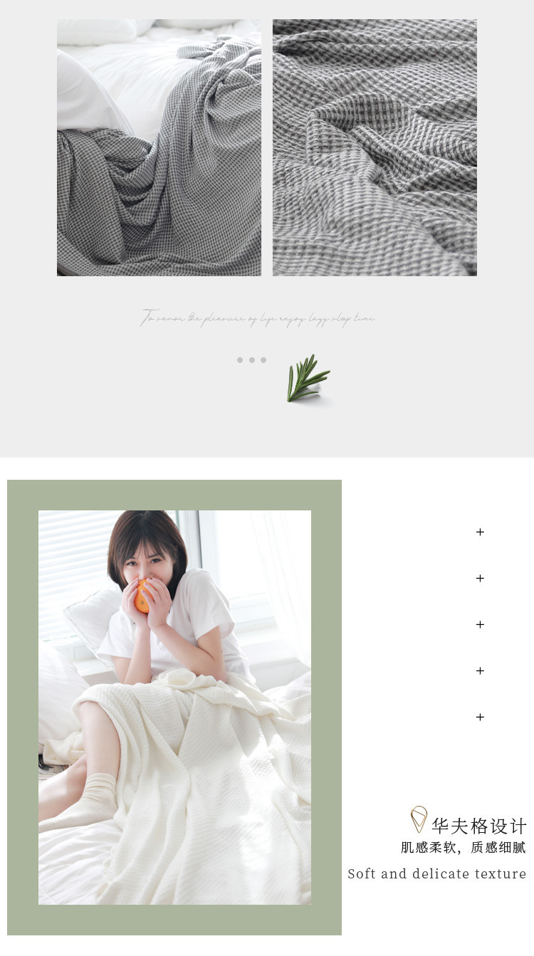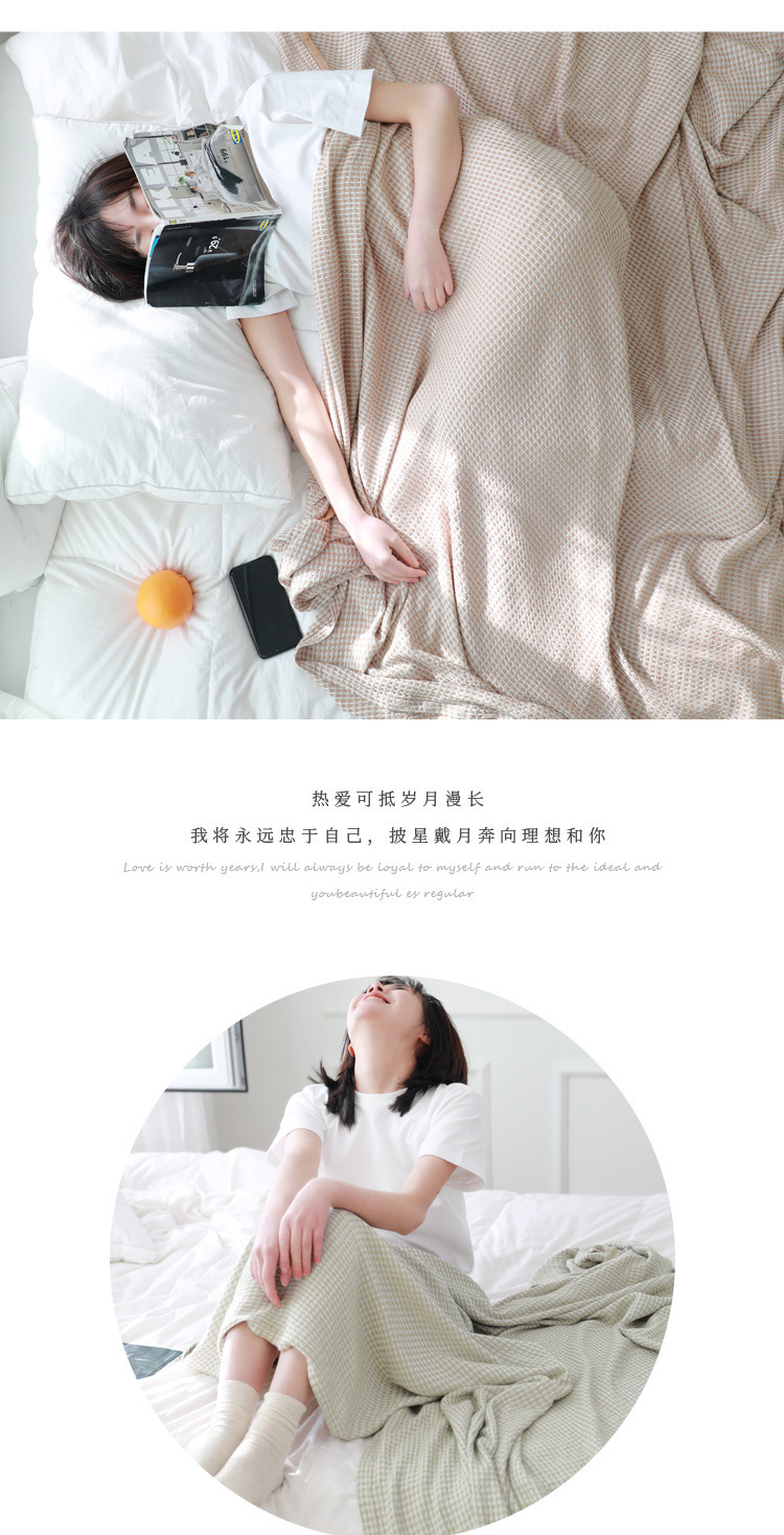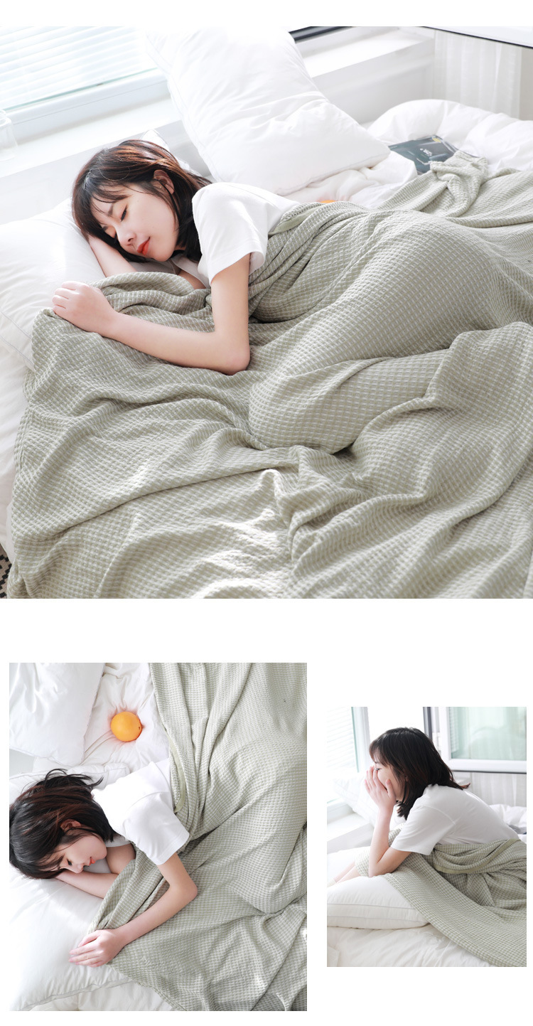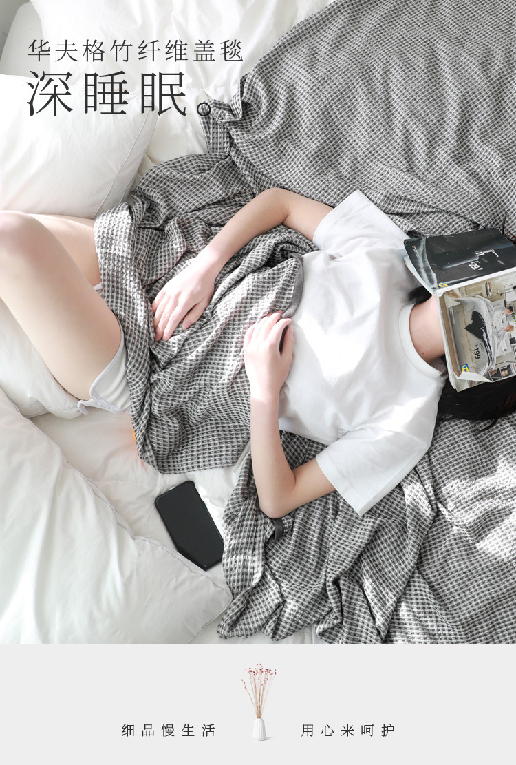 Bamboo fiber yarn-dyed waffle washed summer blanket towel quilt double spring and summer lunch break blanket a generation of hair