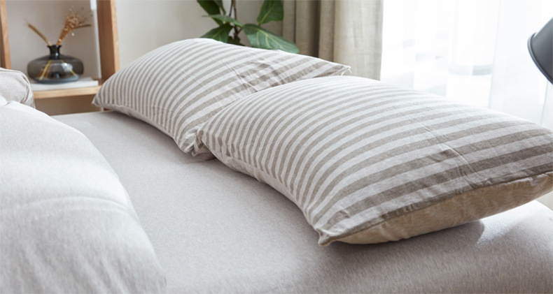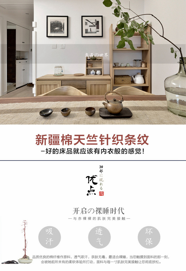 Tianzhu cotton four-piece Japanese knitted cotton striped quilt cover bed sheet bed hat 1.51.8 m bedding generation