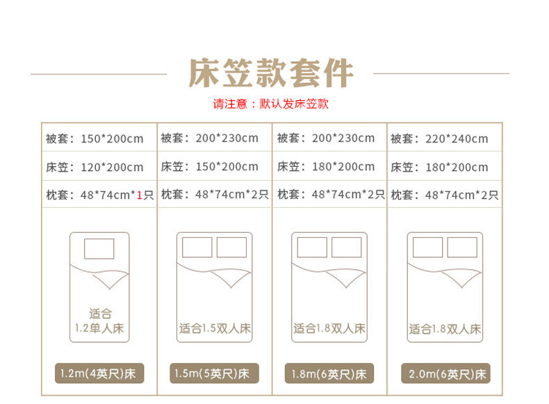 | Dimensions | 1.2m sheets three-piece set,1.5m bed sheet four-piece set,1.8m sheet four-piece set,2.0m bed sheet four-piece set,1.2m bed hat three-piece set,1.5m bed hat four-piece set,1.8m bed hat four-piece set,2.0 m bed hat set |